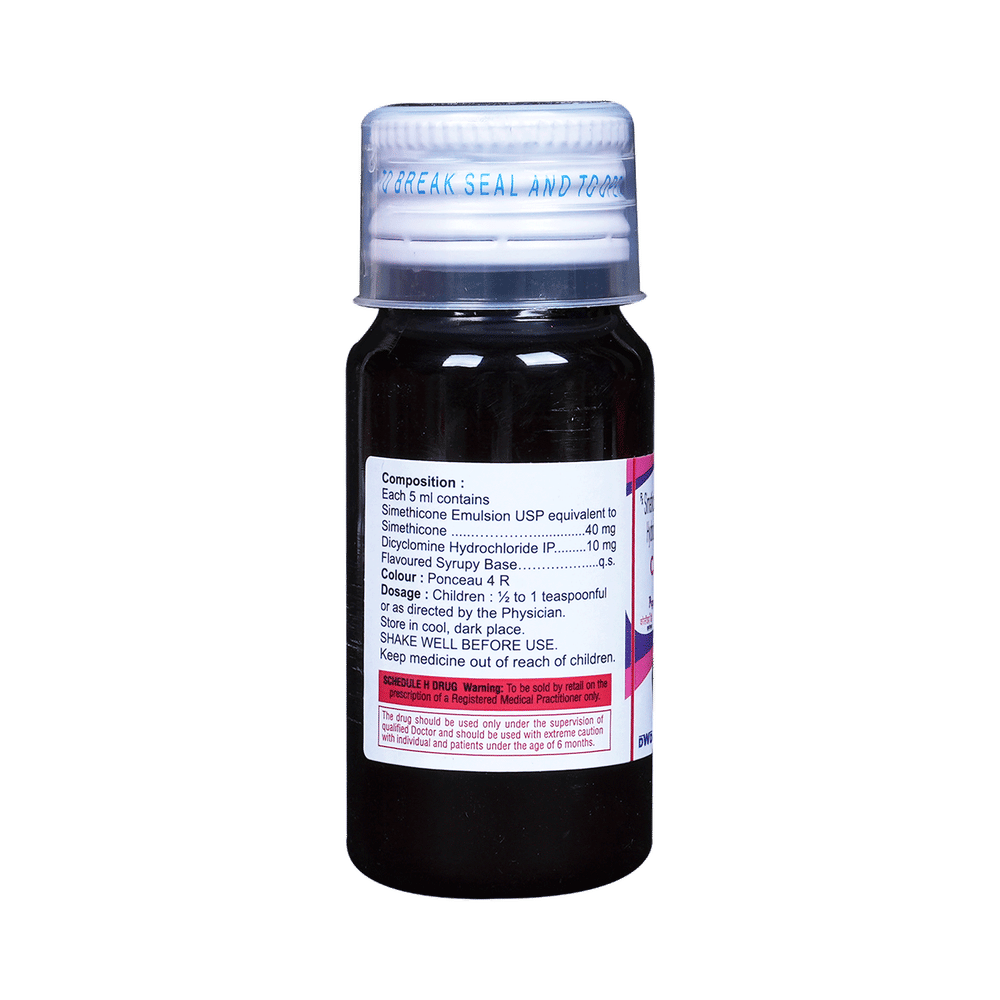 Coliza D Suspension Peppermint is commonly given to treat stomach pain, bloating, and abdominal cramps, and pain associated with excessive acidity, gas, infections, and gastrointestinal tract diseases. It also controls symptoms of irritable bowel syndrome. It relaxes the muscles of the gut and absorbs the extra gas. Give the prescribed dose of Coliza D Suspension Peppermint to your child orally before a meal or as suggested by the doctor. Your child’s doctor may prescribe this medicine for a few days to many days. But, do not continue it for more than 2 weeks without consulting the doctor as excessive and long-term use may have adverse effects on your child. Additionally, do not abruptly stop the medicine by yourself as it may bring back the symptoms or worsen your child’s condition.Some of the common yet temporary side effects of this medicine include nausea, vomiting, constipation, burping, vision problem, loss of appetite, and drowsiness. These usually subside once your child’s body adapts to the medicine. However, if these side effects persist or become bothersome for your child, do reach out to the doctor on a priority basis.You must let your child’s doctor know about all the medicines your child is being given. Also, inform the doctor of any previous history of allergy, intolerance to any food products, abdominal obstruction, liver impairment, kidney malfunction, or any birth defects, This information is very important for dose alterations and for planning your child’s overall treatment.
