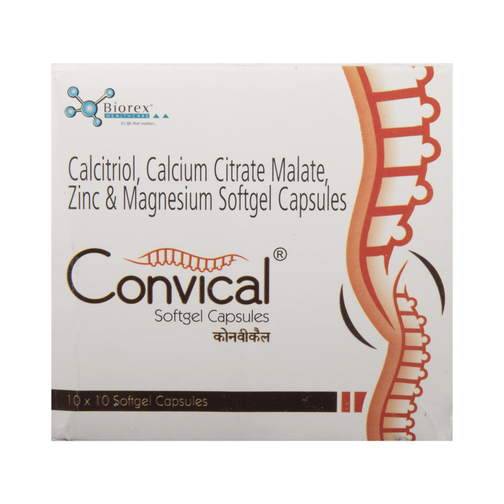Convical Capsule is a combination of vitamins and mineral supplements prescribed to treat vitamin and other nutritional deficiencies. It ensures proper growth and functioning of the body and strengthens immunity. Convical Capsule is taken orally with or without food. It should be used in the dose and duration prescribed by your doctor. It is advised to take this medicine at a fixed time to avoid missing a dose.Convical Capsule is usually a safe medicine with minimal or no side effects. However, if you experience severe diarrhea, vomiting, or constipation, consult your doctor without delay.Before taking this medicine, tell your doctor if you have any other health conditions. Inform them if you are taking any other medicines or are pregnant or breastfeeding. It is advised not to take alcohol after taking this medicine.
