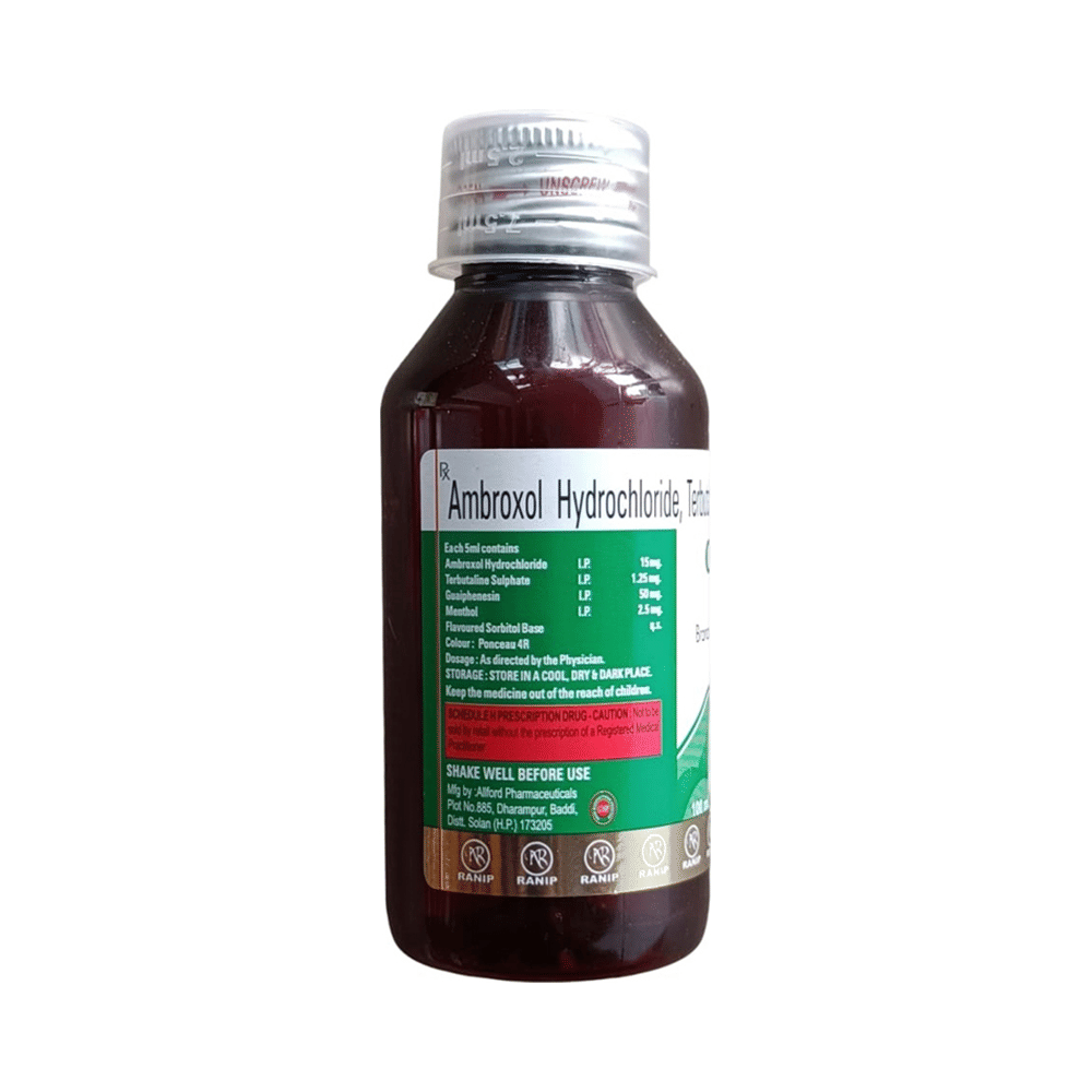 Salt Composition: Ambroxol (15mg/5ml) + Guaifenesin (50mg/5ml) + Menthol (2.5mg/5ml) + Terbutaline (1.25mg/5ml)