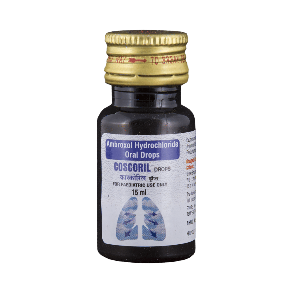 In Treatment of Cough with mucusCoscoril Oral Drops helps gently soothe and relieve your child’s cough. It loosens thick mucus thereby making it easier to cough out. This makes breathing easy and reduces the frequency of coughing. Along with medications, drinking lukewarm water and gargling with warm salt water may also help ease symptoms for your child.In Treatment of Acute Sore throatSore throat refers to pain and discomfort in the throat that is usually seen in bacterial or viral infections. Coscoril Oral Drops works quite quickly to reduce the pain and discomfort for your child. It helps soothe the irritated throat and speeds up the recovery process.In Treatment of Respiratory tract disorders associated with viscid mucusCoscoril Oral Drops helps to loosen thick mucus, making it easier to cough out. This makes it easier for air to move in and out. It will relieve symptoms such as tightness in your chest, shortness of breath, wheezing and coughing and help you carry out your daily activities more easily. This medicine is safe and effective. It usually starts to work within a few minutes and the effects can last up to several hours. Take it as prescribed by the doctor. Do not stop using it unless you are advised to by your doctor. Taking this medicine enables you to live your life more freely without worrying so much about things that set off your symptoms.show moreshow less