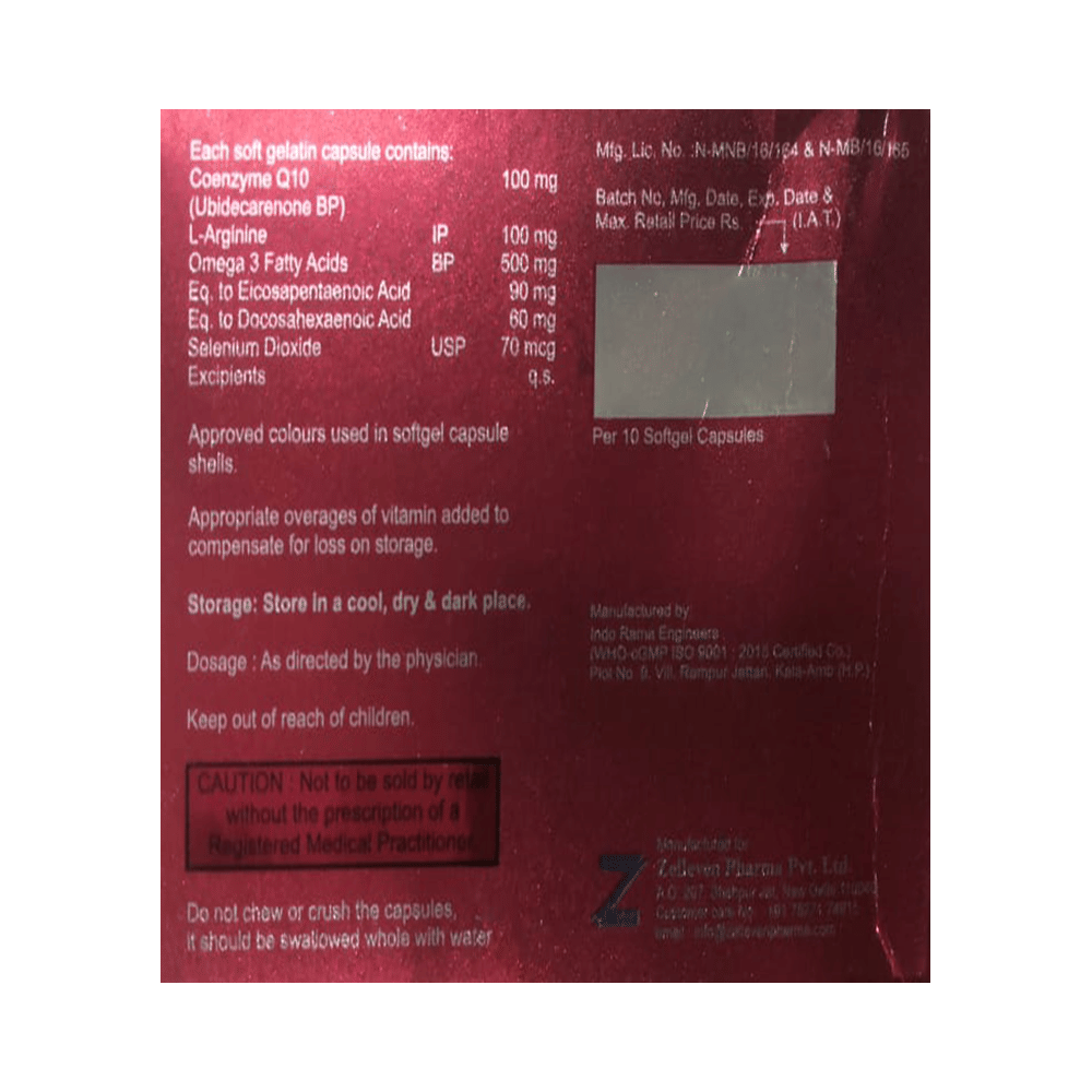 Salt Composition: Coenzyme Q10 (100mg) + L-Arginine (100mg) + Omega-3 fatty acid (150mg) + Selenium (70mcg)