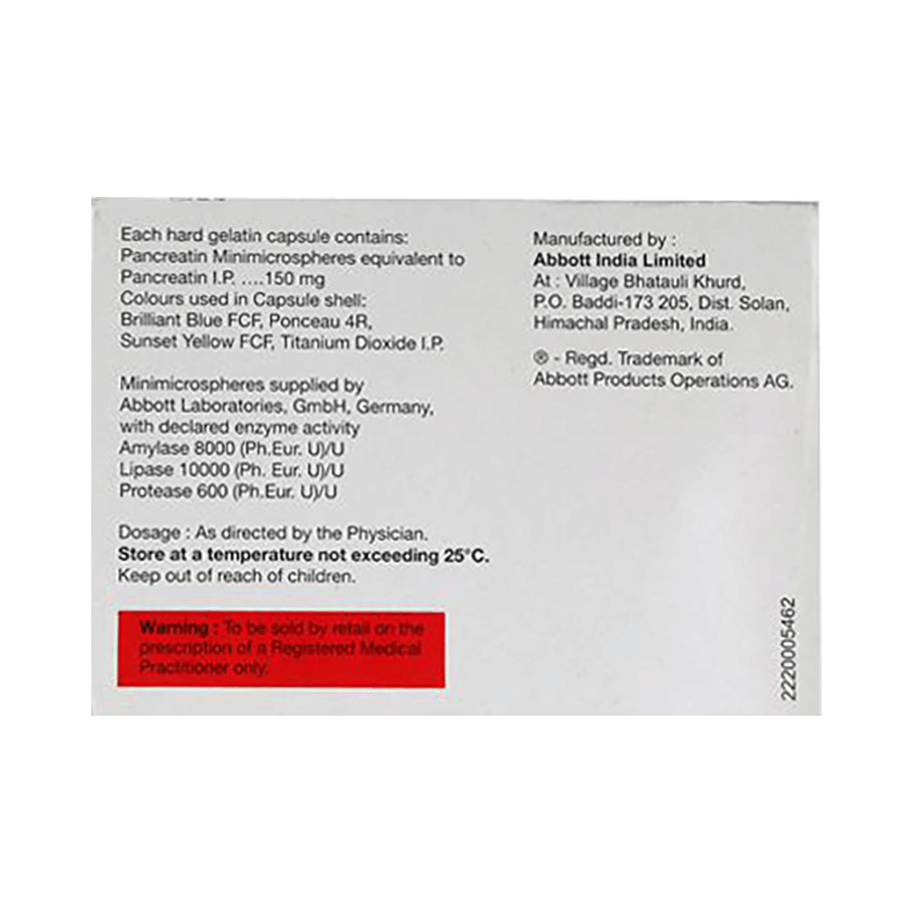 In Treatment of Pancreatic enzyme deficiencyCreon 10000 Capsule is an enzyme supplement for people who do not make enough naturally in their bodies to digest food properly. The enzymes in this medicine help digest food (fats, carbohydrates, and protein) as it passes through the gut. It should be taken with your meal or snack to help it work effectively. Take Creon 10000 Capsule for as long as it is prescribed for maximum benefits. Some may need it for the rest of their lives. You might also be asked to alter your diet to help with digestion.