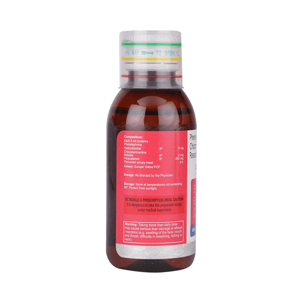 Salt Composition: Chlorpheniramine Maleate (2mg/5ml) + Paracetamol (250mg/5ml) + Phenylephrine (5mg/5ml)