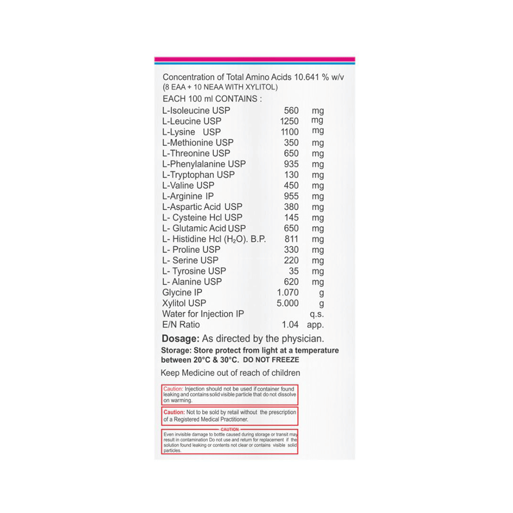 Critmino 200 Infusion are organic compounds that are chained together to form proteins. It is used to treat nutritional deficiencies. It promotes nitrogen-balancing in the body, also replenishes the protein reserve of the body in extensive burns or protein-calorie malnutrition. Critmino 200 Infusion is given under the supervision of a healthcare professional. Take it in a dose and duration as advised by the doctor. The full course of treatment should be completed as per prescription.This medicine may cause injection site inflammation (redness, swelling, and pain), acute folic acid deficiency, fever, and increased sweating as its side effects. It is better to consult with your doctor if any of the side effects bother you.This medicine may also cause metabolic and liver disorders, that is why it is important to undergo regular clinical evaluations and laboratory tests (blood and urine) to know the effects and side effects of this medicine on your organs. Before initiating this treatment, you must consult your doctor if you have any health conditions or your ongoing medications. Pregnant and breastfeeding women should only take this medicine if advised by the doctor.