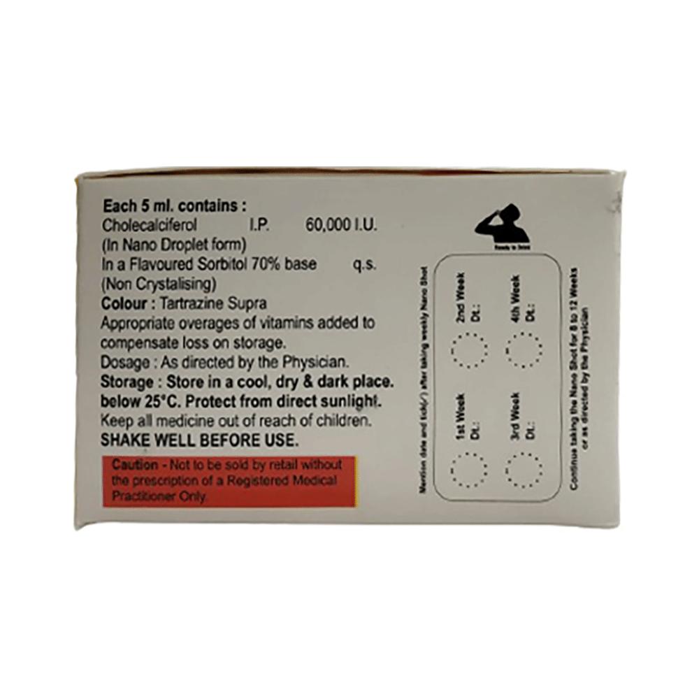 Cro-D3 Nano Oral Solution Butterscotch Sugar Free is used in the treatment of vitamin D deficiency and osteoporosis. It helps the body to absorb calcium. Calcium is essential for maintaining strong and healthy bones. It is used when your diet does not provide enough calcium. Cro-D3 Nano Oral Solution Butterscotch Sugar Free should be taken as directed by your doctor. It is best taken with or after food, as this helps your body absorb it, and you should take it regularly to get the most benefits. If you are using it to treat osteoporosis, you will also be prescribed other medicines. This medicine may be only part of a complete treatment program that includes making changes to your diet and taking calcium and vitamin supplements. Learn about the foods you should eat to ensure you get enough calcium and vitamin D.Cro-D3 Nano Oral Solution Butterscotch Sugar Free has few side effects, and none are common. If you take too much, you may feel weakness, muscle pain, or a metallic taste in your mouth. If you experience any such side effects, speak with your doctor. They may be able to help you reduce or treat the symptoms.Before taking this medicine, tell your doctor if you have high calcium levels in your blood or if you have any heart, kidney, or liver disease. Some other medicines can decrease the absorption of vitamin D3, so let your doctor know about all the other medicines you are taking to make sure you are safe. This medicine may help during pregnancy when your body needs more vitamin D, but too much could harm your baby. Discuss it with your doctor.