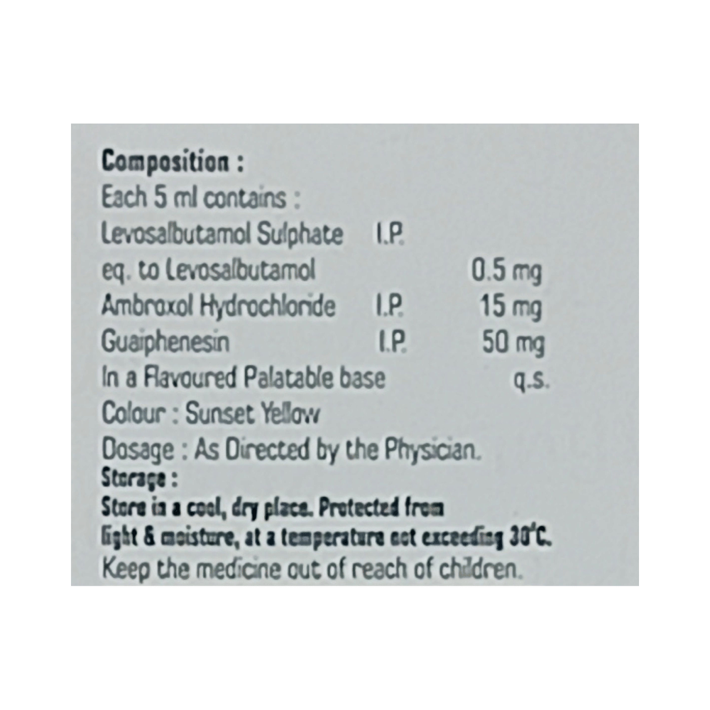 Salt Composition: Ambroxol (15mg/5ml) + Levosalbutamol (0.5mg/5ml) + Guaifenesin (50mg/5ml)