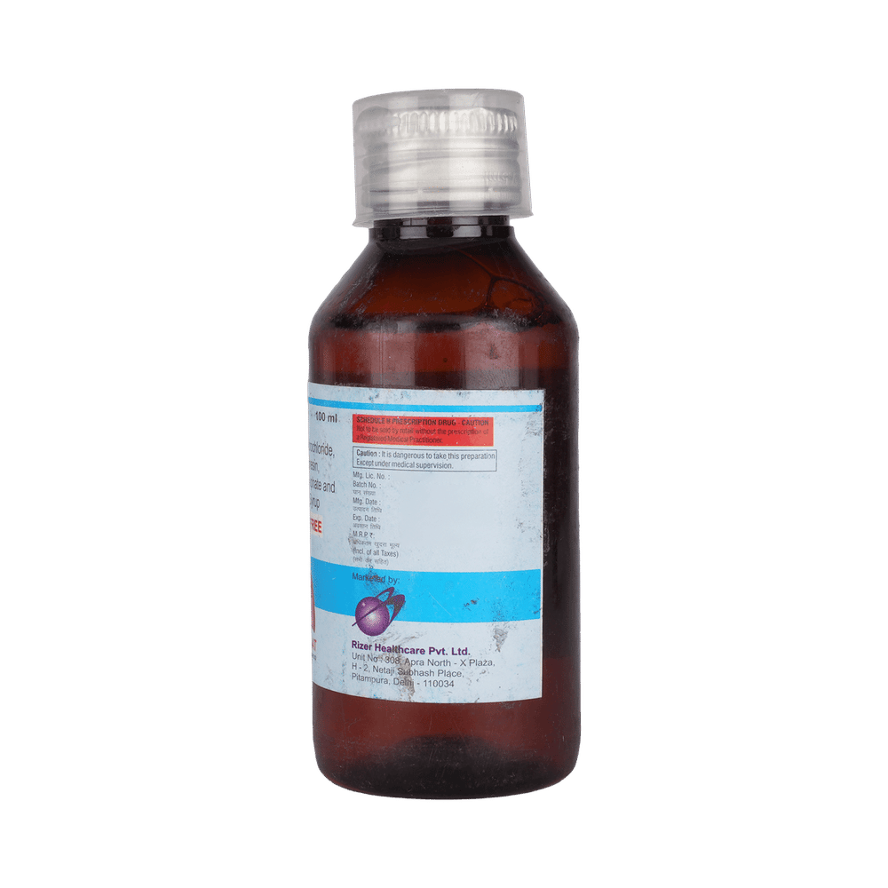 In CoughCufzer-AT Expectorant Sugar Free gives relief from cough by loosening thick mucus and making it easier to cough it out. It also makes it easier for air to move in and out of your airways. This reduces the frequency of coughing and makes you feel better. Cufzer-AT Expectorant Sugar Free also soothes your throat and gives relief from irritation. Along with medications, drink enough luke warm water and gargle with warm salt water to ease the symptoms.
