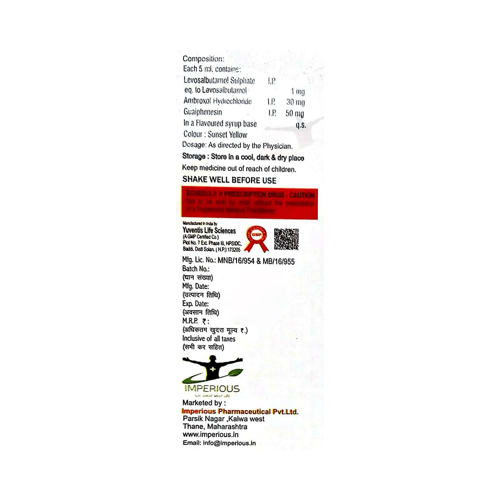 Salt Composition: Levosalbutamol (1mg/5ml) + Ambroxol (30mg/5ml) + Guaifenesin (50mg/5ml)