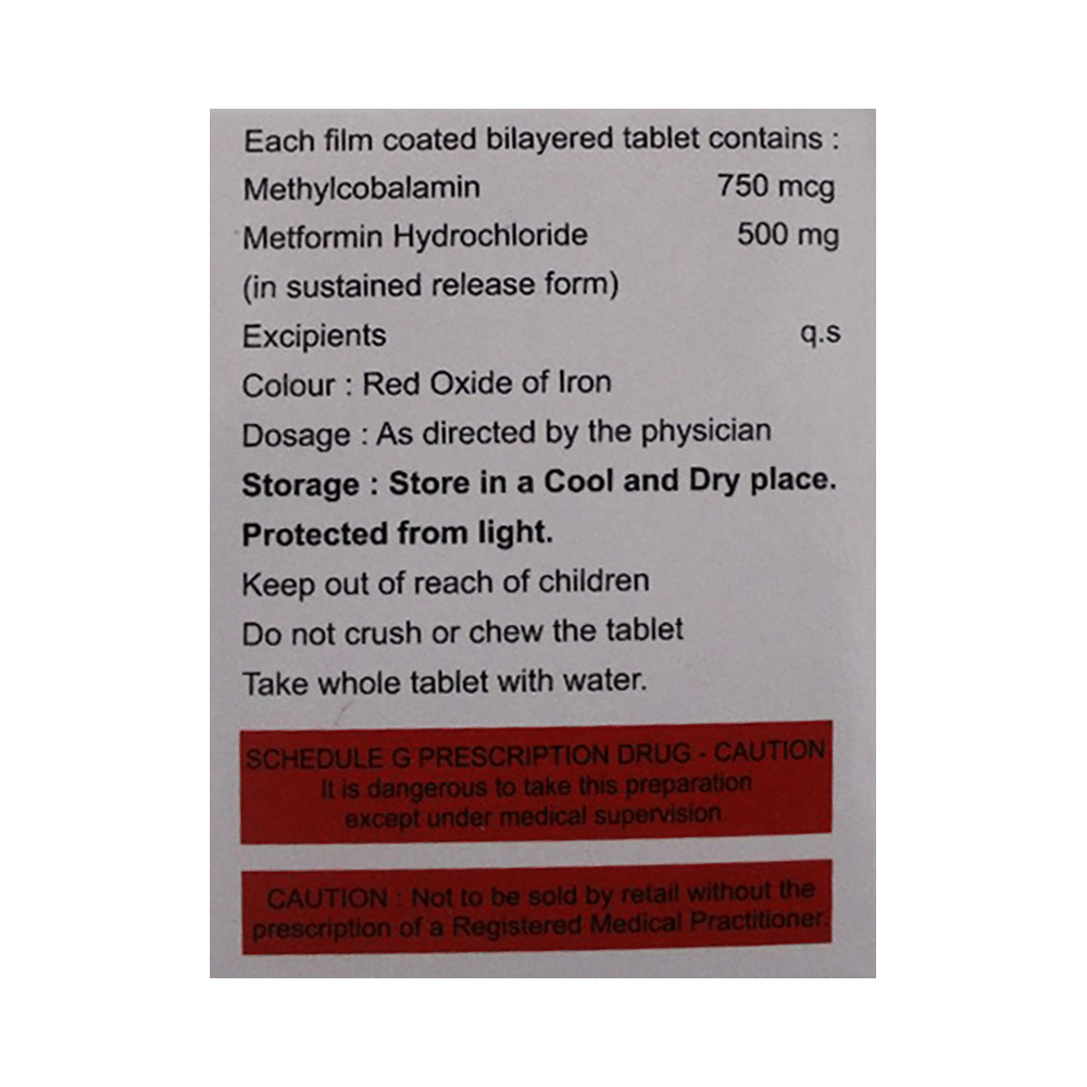 Salt Composition: Metformin (500mg) + Methylcobalamin (750mcg)