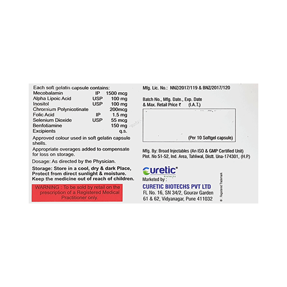 Salt Composition: Methylcobalamin (1500mcg) + Alpha Lipoic Acid (100mg) + Myo-Inositol (100mg) + Folic Acid (1.5mg) + Chromium Picolinate (200mcg) + Selenium (55mcg) + Benfotiamine (150mg)