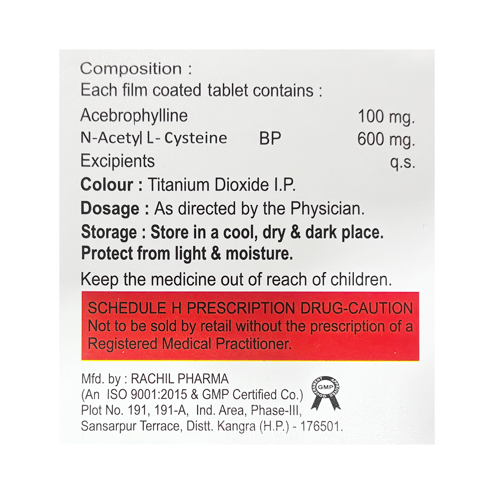 Salt Composition: Acebrophylline (100mg) + Acetylcysteine (600mg)