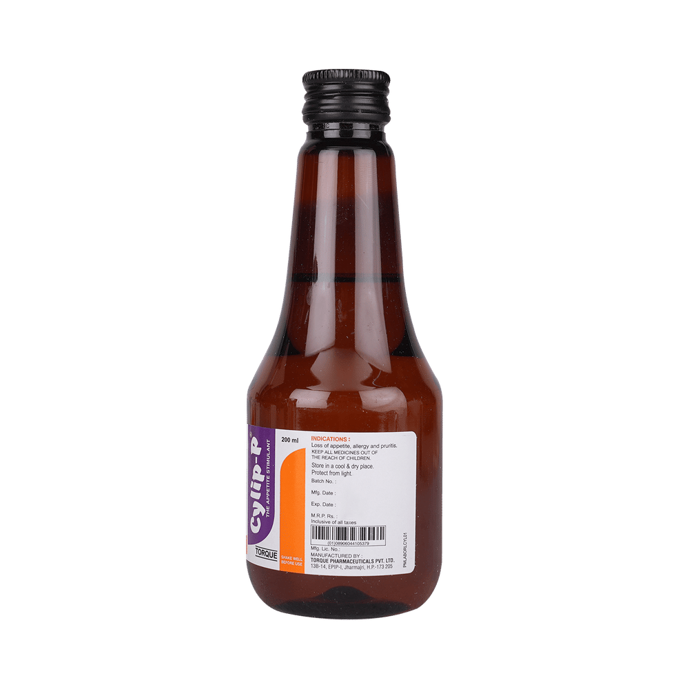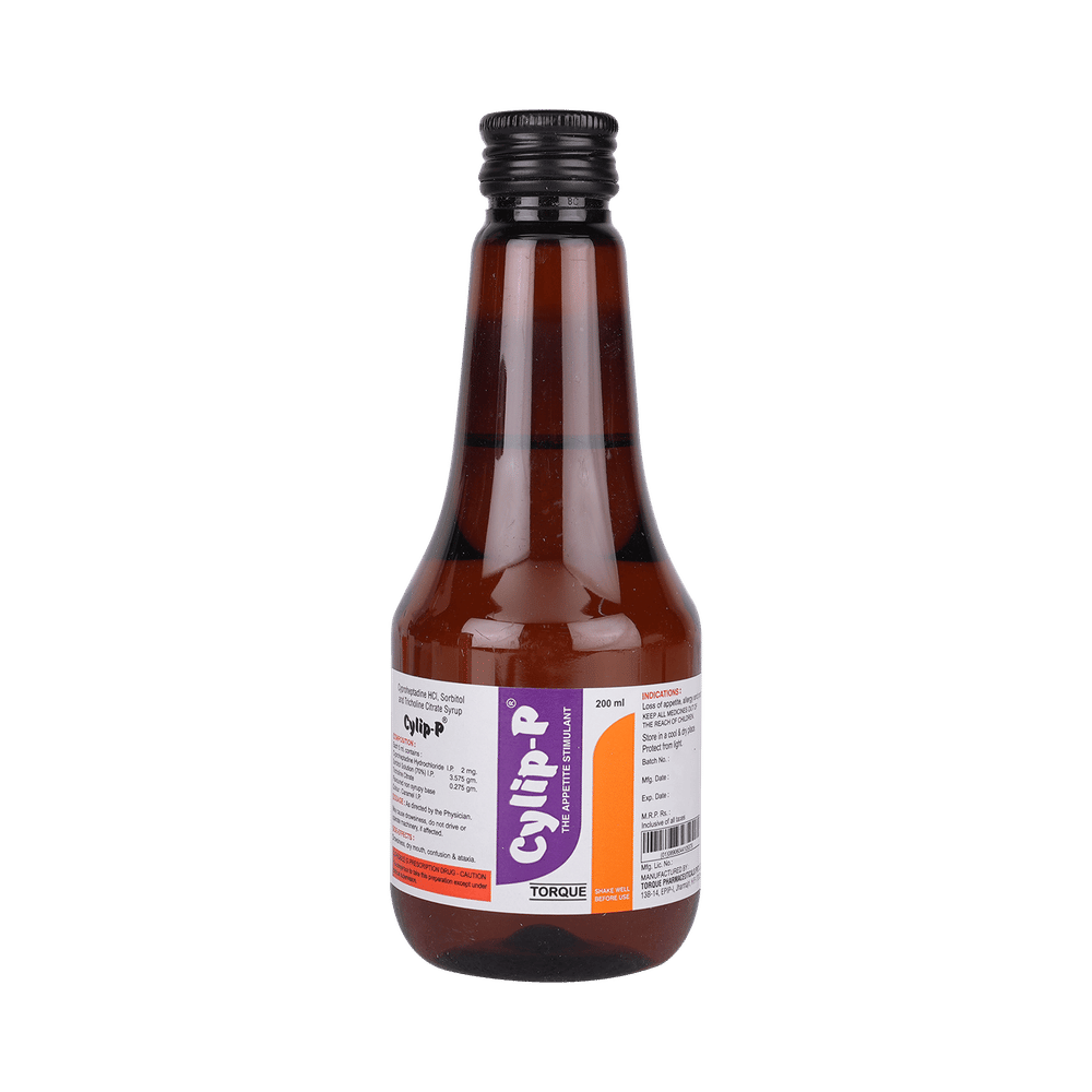 Cylip P Syrup is a combination medicine used to treat loss of appetite. It is an effective appetite stimulant. It works by reducing the effect of a chemical messenger which regulates appetite. Cylip P Syrup is taken with or without food in a dose and duration as advised by the doctor. The dose you are given will depend on your condition and how you respond to the medicine. You should keep taking this medicine for as long as your doctor recommends. Let your healthcare team know about all other medications you are taking as some may affect, or be affected by this medicine.The most common side effects are constipation, dryness in the mouth, and blurred vision. Most of these are temporary and usually resolve with time. Contact your doctor straight away if you are concerned about any of these. It can cause dizziness, so do not drive or do anything that requires mental focus until you know how this medicine affects you. Avoid drinking alcohol while taking this medicine as it can worsen your sleepiness.Before taking Cylip P Syrup, inform your doctor if you have any kidney or liver diseases so that your doctor can prescribe a suitable dose for you. Pregnant or breastfeeding women should also consult their doctor before taking this medicine.