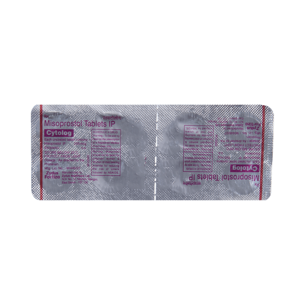 Cytolog Tablet is a medicine used for medical abortion (terminating a pregnancy). It is also used for preventing excessive bleeding after delivery. This medicine acts on the uterus and increases its contraction. Cytolog Tablet is given alone or in combination with some other medicine to attain the maximum benefit. It should be taken with food or as your doctor's advice. It should be taken orally, by swallow the tablets whole with a drink of water. If you experience vomiting within 30 minutes of tablet intake, inform your doctor or take another tablet. The medicine may take 24 hours to show its action and you experience bleeding.Common side effects of this medicine include infection following abortion, nausea, vomiting, diarrhea, cramps, uterine contractions or cramping, uterine bleeding, heavy bleeding, and fetal malformations. If these bother you or appear serious, let your doctor know. There may be ways of reducing or preventing them. Usually, vaginal bleeding may last for 12 days, inform your doctor if it lasts for more than 12 days or you notice severe abdominal pain.Before taking this medicine, tell your doctor if you have ever had an ectopic pregnancy, or you are breastfeeding or using an intrauterine device. Your doctor should also know about all other medicines you are taking as many of these may make this medicine less effective or change the way it works. You must avoid strenuous activity like heavy exercise, running, and driving while abortion as it can affect the bleeding. Your doctor may perform an ultrasound or pelvic examination to check for abortion completion.