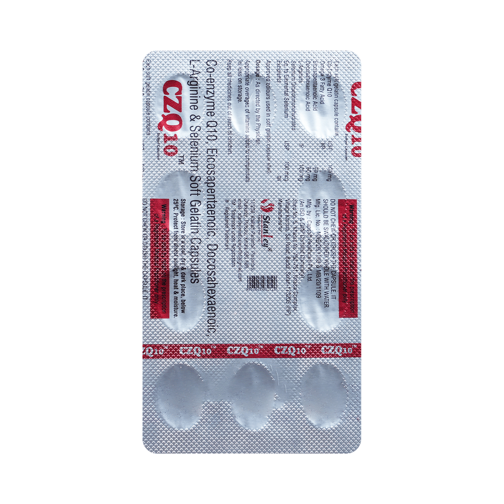 CZQ 10 Capsule helps maintain overall health by supporting various body functions. Coenzyme Q10 plays a key role in energy production and protects cells from damage. L-arginine helps improve blood flow by relaxing blood vessels. Omega-3 fatty acids support the body's normal functions by helping reduce inflammation. Selenium acts as an antioxidant, protecting cells and supporting the immune system. Together, these nutrients help fulfill nutritional needs and contribute to overall well-being.