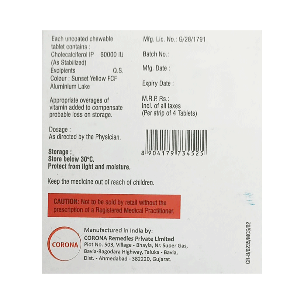Salt Composition: Vitamin D3 (60000IU)