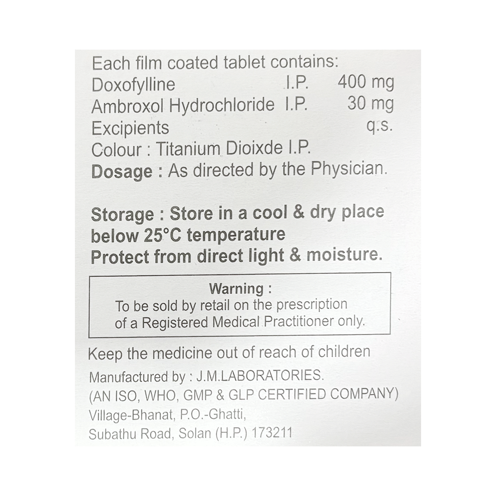 Salt Composition: Doxofylline (400mg) + Ambroxol (30mg)