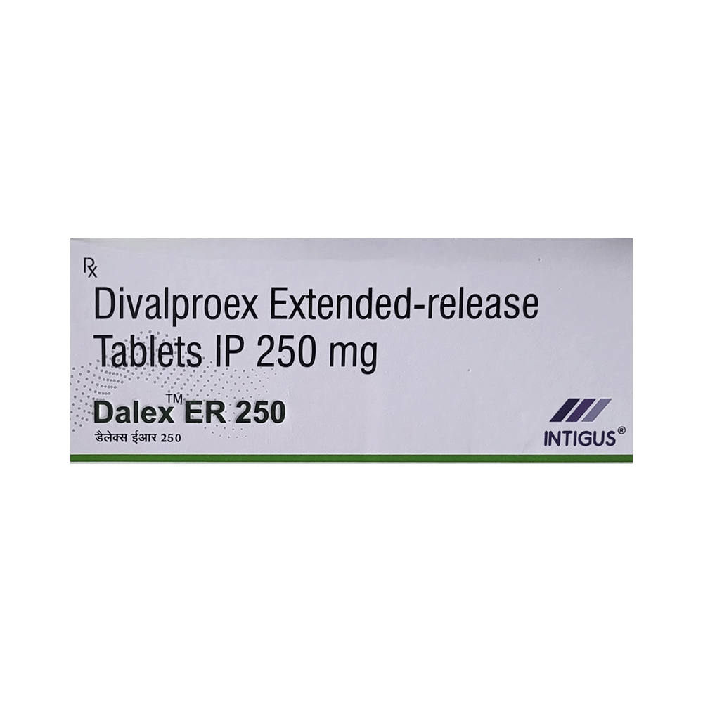 Dalex-ER 250 Tablet is a medication used to treat epilepsy, seizures, bipolar disorder, mania, trigeminal neuralgia, and migraines. It works by stabilizing brain activity. Always use it under medical supervision for safe and effective treatment. Dalex-ER 250 Tablet may be used alone or in combination with other medicines. Your doctor will determine the appropriate dose and frequency to effectively control your symptoms. You can take this medicine with or without food, but for the best results, take it at the same time each day. It usually takes a couple of weeks to work. It is important to take this medicine regularly and for as long as you are advised, even if you feel well. Missing doses may trigger seizures, and if you stop, your condition may get worse. It should never be stopped suddenly.The most common side effects of Dalex-ER 250 Tablet include headache, constipation, nausea, vomiting, dizziness, weight gain, rash, back pain, and abdominal pain. Most of these are not serious. Continue taking the medicine, but consult your doctor if these side effects persist or become bothersome. However, if you notice a skin rash or redness, tell your doctor straight away. Long-term treatment with this medicine can cause osteoporosis (reduced bone mass) and increase your risk of breaking a bone. Also, Dalex-ER 250 Tablet may rarely lead to suicidal thoughts and behaviors. If your mood becomes depressed, tell your doctor.Dalex-ER 250 Tablet may not be suitable for everybody. Before using it, tell your doctor if you have ever had heart problems, kidney or liver disease, difficulty urinating, depression, or suicidal thoughts. Some medicines can interfere with it and should not be taken together, so tell your doctor about all the medicines you are taking to make sure it is safe for you. If you are pregnant, do not take this medicine without asking your doctor. Avoid drinking alcohol, as it may enhance certain side effects and increase the risk of seizures. You may need frequent blood tests to help your doctor make sure you are taking the right dose both before you start and while you are using it.
