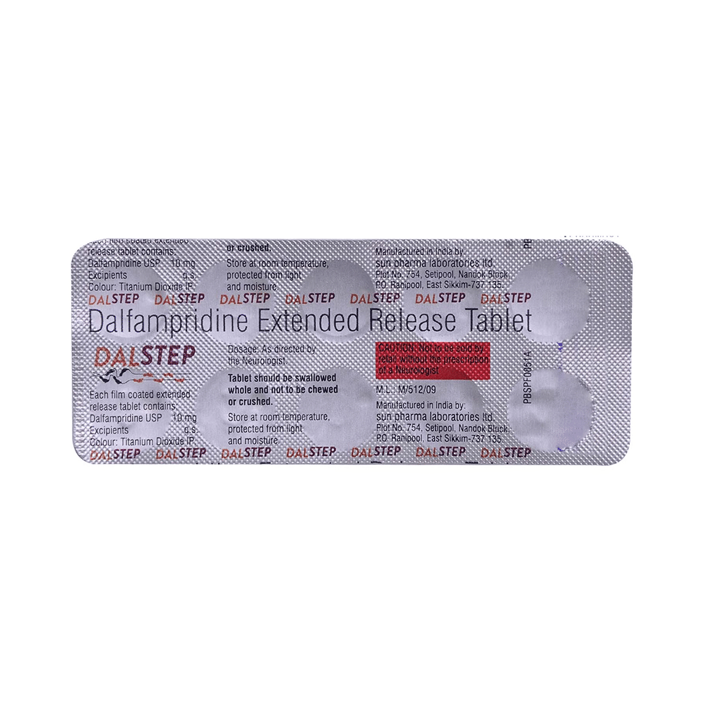 Dalstep 10mg Tablet ER is a potassium channel blocker. It works by strengthening the communication between nerves and muscles. This results in improved muscle activity – in this case, walking – in people with multiple sclerosis.