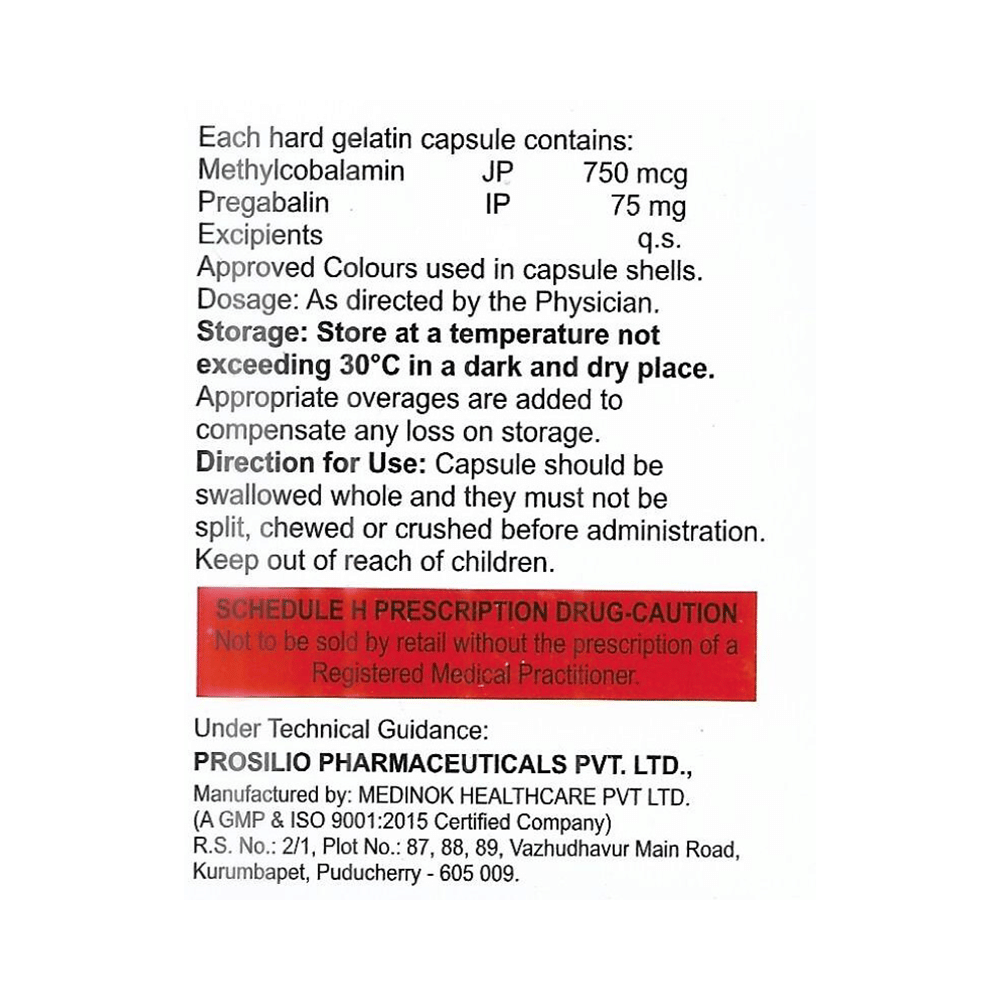 Salt Composition: Methylcobalamin (750mcg) + Pregabalin (75mg)
