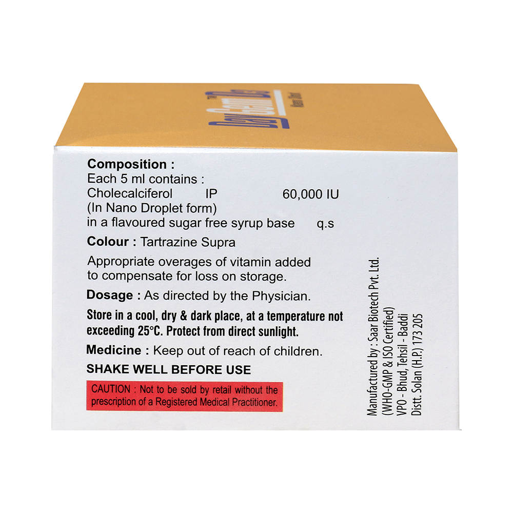 Daygem D3 Nano Shots (5ml Each) Sugar Free is used in the treatment of vitamin D deficiency and osteoporosis. It helps the body to absorb calcium. Calcium is essential for maintaining strong and healthy bones. It is used when your diet does not provide enough calcium. Daygem D3 Nano Shots (5ml Each) Sugar Free should be taken as directed by your doctor. It is best taken with or after food, as this helps your body absorb it, and you should take it regularly to get the most benefits. If you are using it to treat osteoporosis, you will also be prescribed other medicines. This medicine may be only part of a complete treatment program that includes making changes to your diet and taking calcium and vitamin supplements. Learn about the foods you should eat to ensure you get enough calcium and vitamin D.Daygem D3 Nano Shots (5ml Each) Sugar Free has few side effects, and none are common. If you take too much, you may feel weakness, muscle pain, or a metallic taste in your mouth. If you experience any such side effects, speak with your doctor. They may be able to help you reduce or treat the symptoms.Before taking this medicine, tell your doctor if you have high calcium levels in your blood or if you have any heart, kidney, or liver disease. Some other medicines can decrease the absorption of vitamin D3, so let your doctor know about all the other medicines you are taking to make sure you are safe. This medicine may help during pregnancy when your body needs more vitamin D, but too much could harm your baby. Discuss it with your doctor.