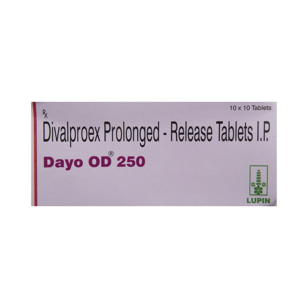 Dayo OD 250 Tablet PR is a medication used to treat epilepsy, seizures, bipolar disorder, mania, trigeminal neuralgia, and migraines. It works by stabilizing brain activity. Always use it under medical supervision for safe and effective treatment. Dayo OD 250 Tablet PR may be used alone or in combination with other medicines. Your doctor will determine the appropriate dose and frequency to effectively control your symptoms. You can take this medicine with or without food, but for the best results, take it at the same time each day. It usually takes a couple of weeks to work. It is important to take this medicine regularly and for as long as you are advised, even if you feel well. Missing doses may trigger seizures, and if you stop, your condition may get worse. It should never be stopped suddenly.The most common side effects of Dayo OD 250 Tablet PR include headache, constipation, nausea, vomiting, dizziness, weight gain, rash, back pain, and abdominal pain. Most of these are not serious. Continue taking the medicine, but consult your doctor if these side effects persist or become bothersome. However, if you notice a skin rash or redness, tell your doctor straight away. Long-term treatment with this medicine can cause osteoporosis (reduced bone mass) and increase your risk of breaking a bone. Also, Dayo OD 250 Tablet PR may rarely lead to suicidal thoughts and behaviors. If your mood becomes depressed, tell your doctor.Dayo OD 250 Tablet PR may not be suitable for everybody. Before using it, tell your doctor if you have ever had heart problems, kidney or liver disease, difficulty urinating, depression, or suicidal thoughts. Some medicines can interfere with it and should not be taken together, so tell your doctor about all the medicines you are taking to make sure it is safe for you. If you are pregnant, do not take this medicine without asking your doctor. Avoid drinking alcohol, as it may enhance certain side effects and increase the risk of seizures. You may need frequent blood tests to help your doctor make sure you are taking the right dose both before you start and while you are using it.