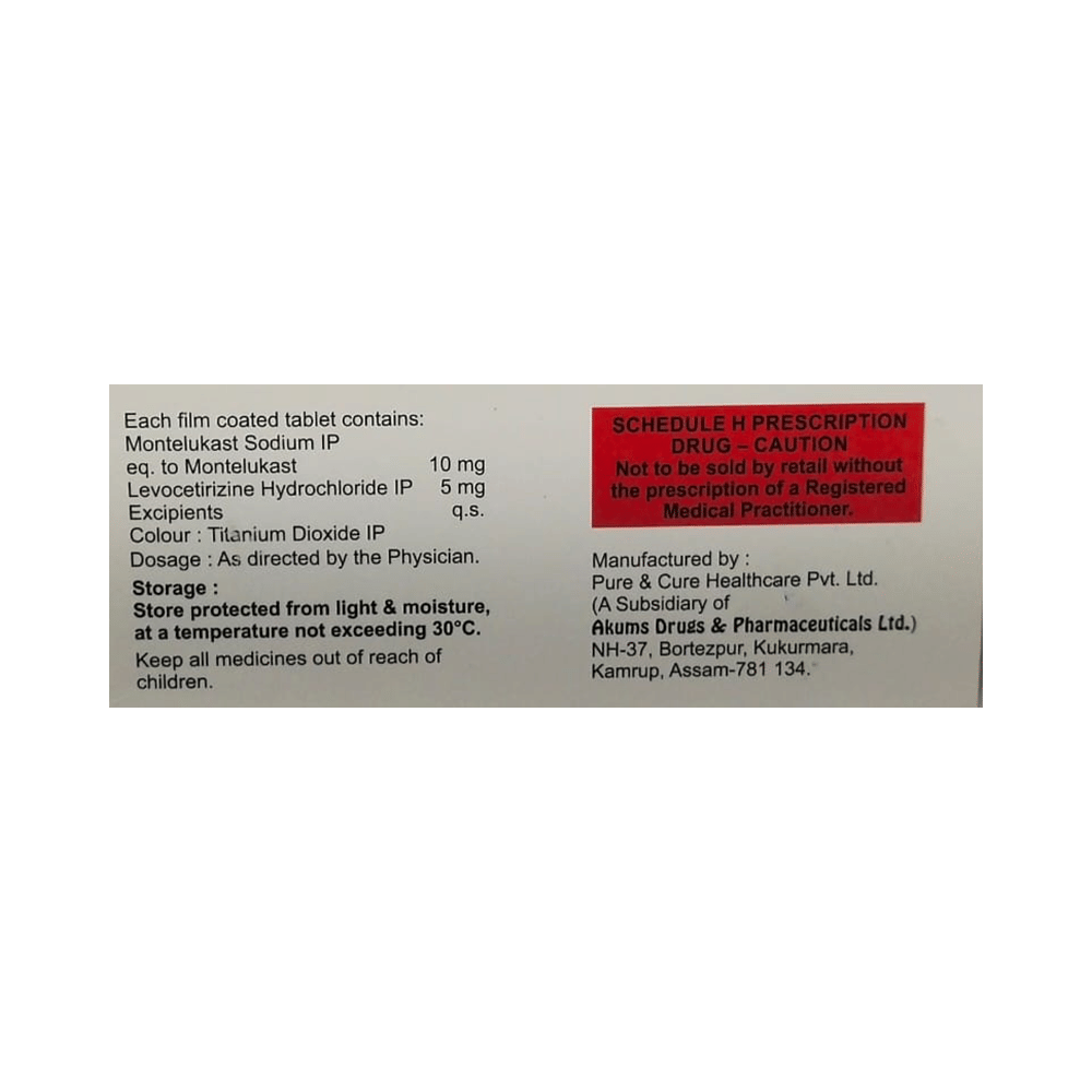 Salt Composition: Levocetirizine (5mg) + Montelukast (10mg)
