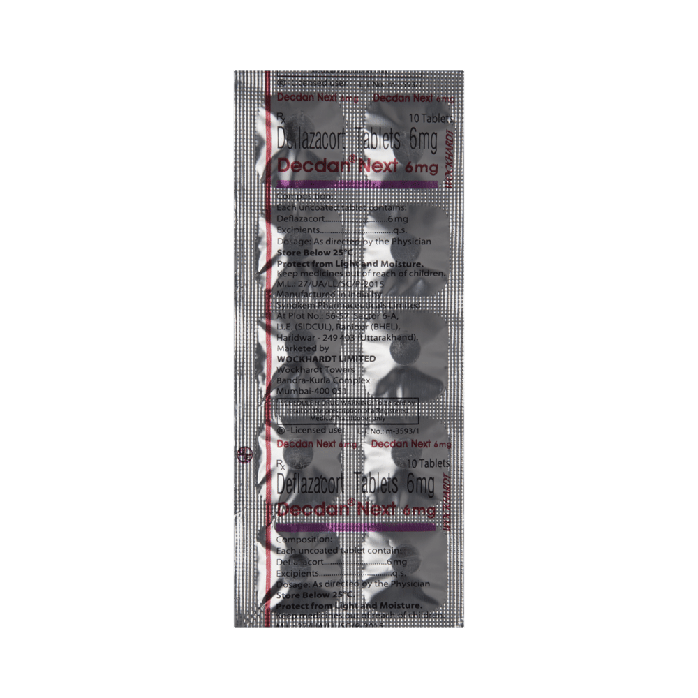 Decdan Next 6mg Tablet helps treat inflammation, severe allergies, flare-ups of ongoing illnesses, and many other medical problems that require either reduction of inflammation or suppression of the immune system.