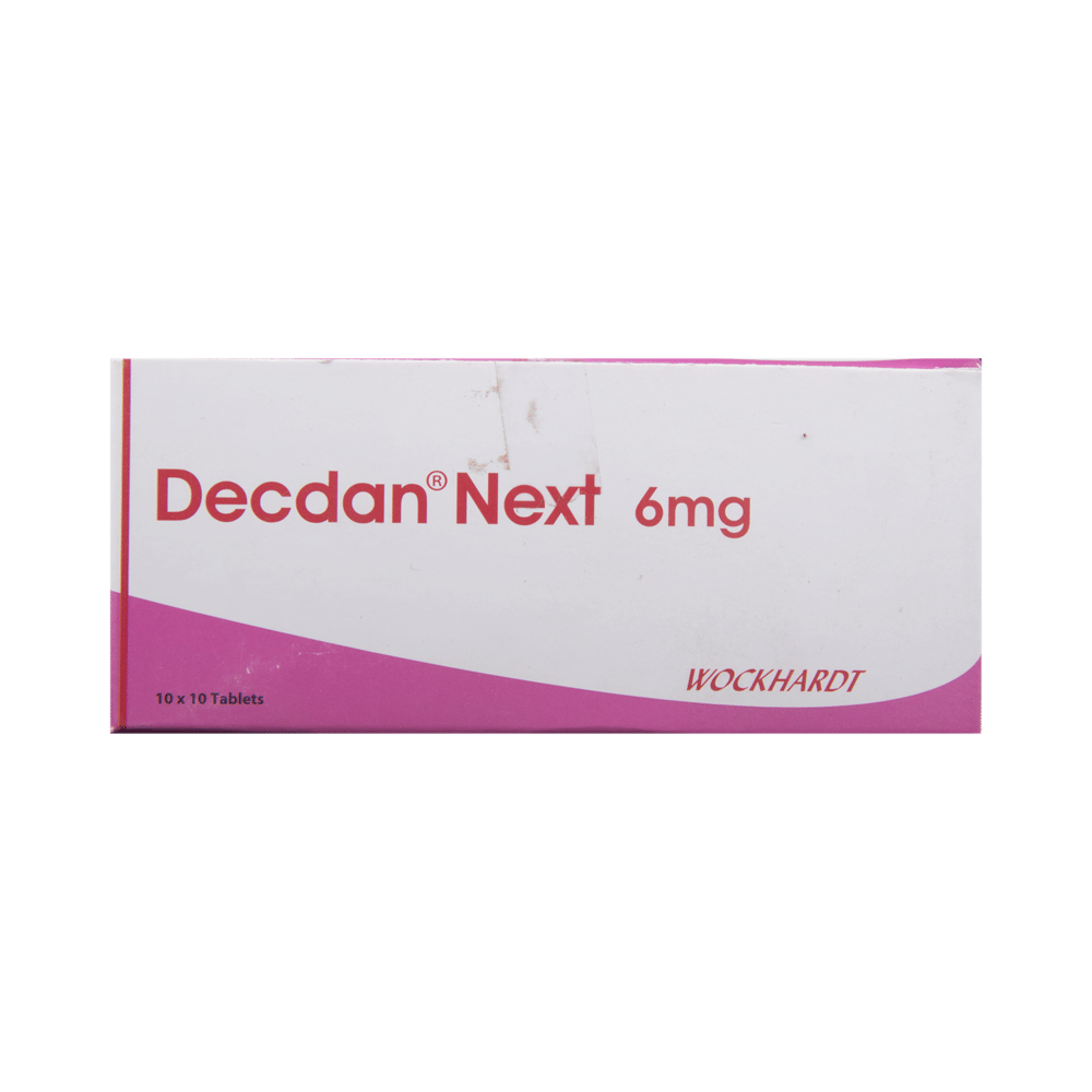 Take this medicine in the dose and duration as advised by your doctor. Swallow it as a whole. Do not chew, crush or break it. Decdan Next 6mg Tablet may be taken with or without food, but it is better to take it at a fixed time.Avoid Decdan Next 6mg Tablet with salad and vegetable diet.