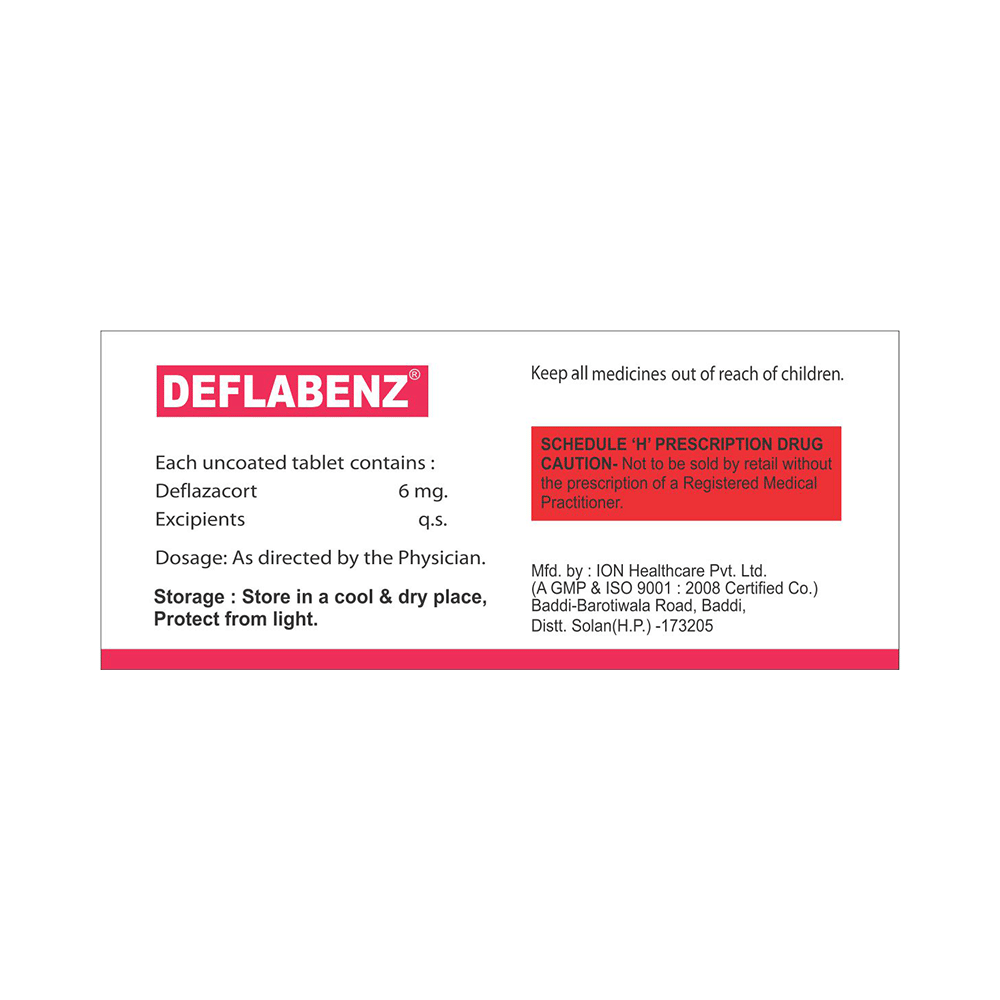 Deflabenz Tablet is a corticosteroid. It increases the level of glucocorticoid in the body and works by decreasing the formation of substances that cause inflammation and suppresses immunity to stop self damage to the body by the immune system (auto-immune reactions occurring in organ transplants or cancer).