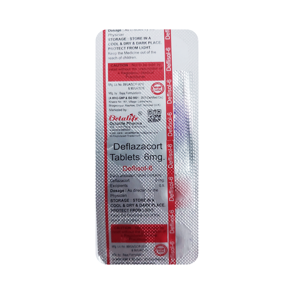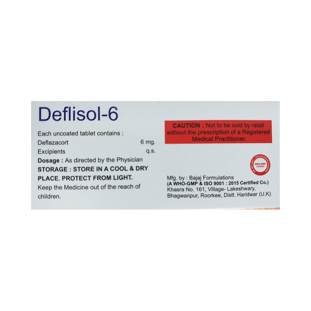 Deflisol 6 Tablet helps treat inflammation, severe allergies, flare-ups of ongoing illnesses, and many other medical problems that require either reduction of inflammation or suppression of the immune system.
