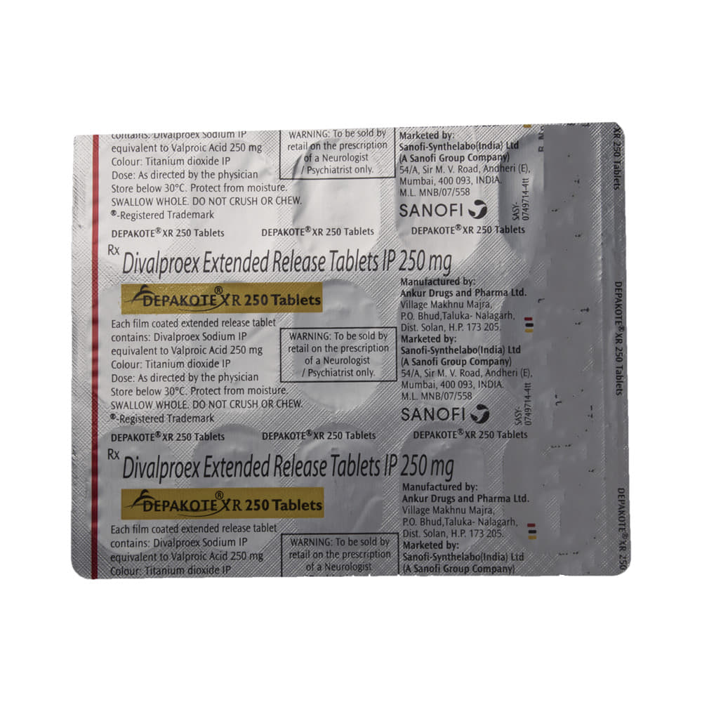 In Treatment of Bipolar disorderDepakote XR 250 Tablet works to restore the normal balance of nerve activity in your brain. It can help prevent extreme changes in mood and help you feel less agitated. You may experience fewer episodes of low mood. It can take several weeks for this medicine to work and you may still feel low during this time. It is likely that you will take this medicine for at least six months but possibly much longer. It needs to be taken regularly to work effectively. Do not stop taking it unless your doctor advises you to. You should continue to eat well and keep fit to reduce symptoms of bipolar disorder.In Treatment of Epilepsy/SeizuresDepakote XR 250 Tablet is an anticonvulsant (or anti-epileptic) medicine that works by decreasing the nerve impulses which cause the seizures. By controlling the frequency of seizures, it will help you go about your daily activities with more confidence. It helps reduce symptoms such as confusion, uncontrollable jerking movements, loss of awareness, and fear or anxiety.This medicine is not associated with any physical or psychological dependence (addiction) but it should not be stopped suddenly. It must be taken regularly as prescribed to be effective. Missing doses may trigger a seizure.show moreshow less