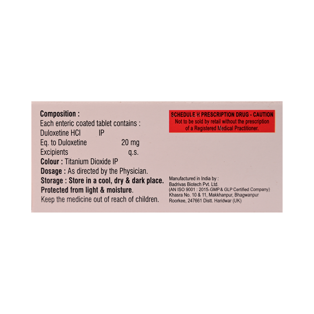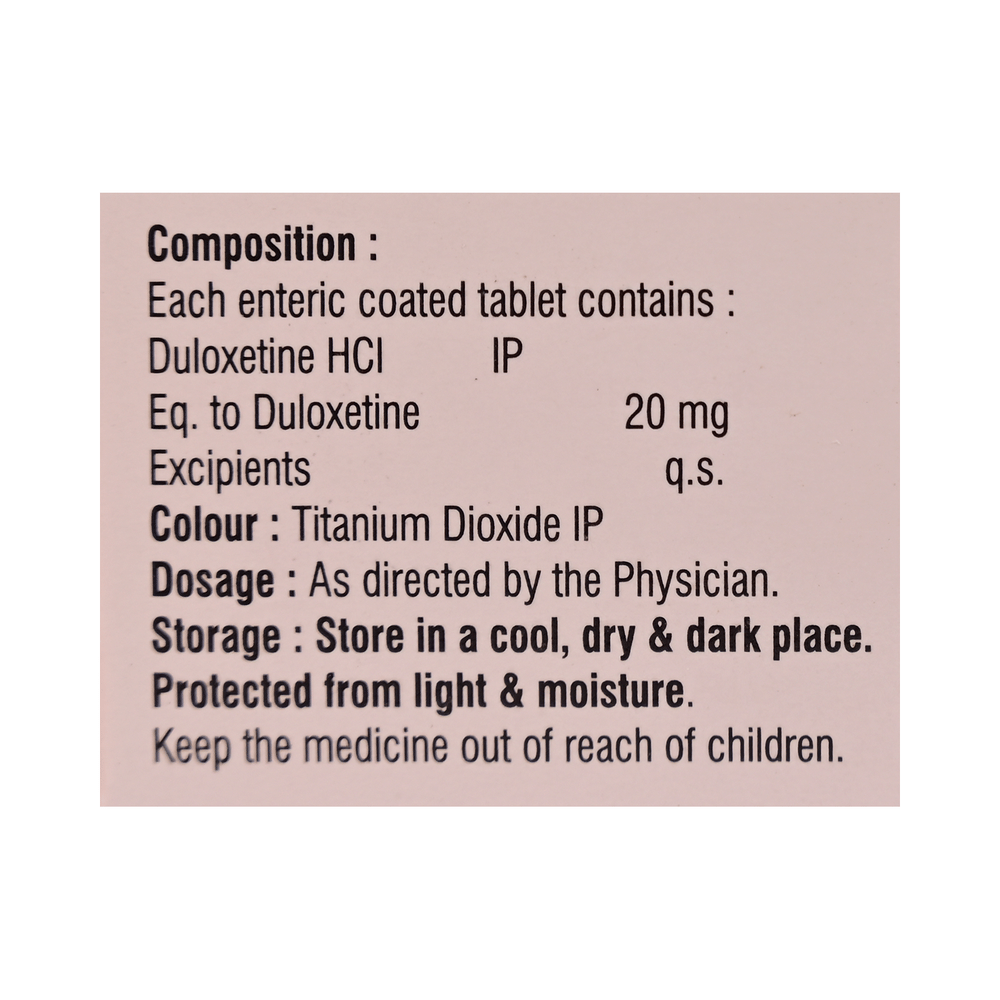 Salt Composition: Duloxetine (20mg)