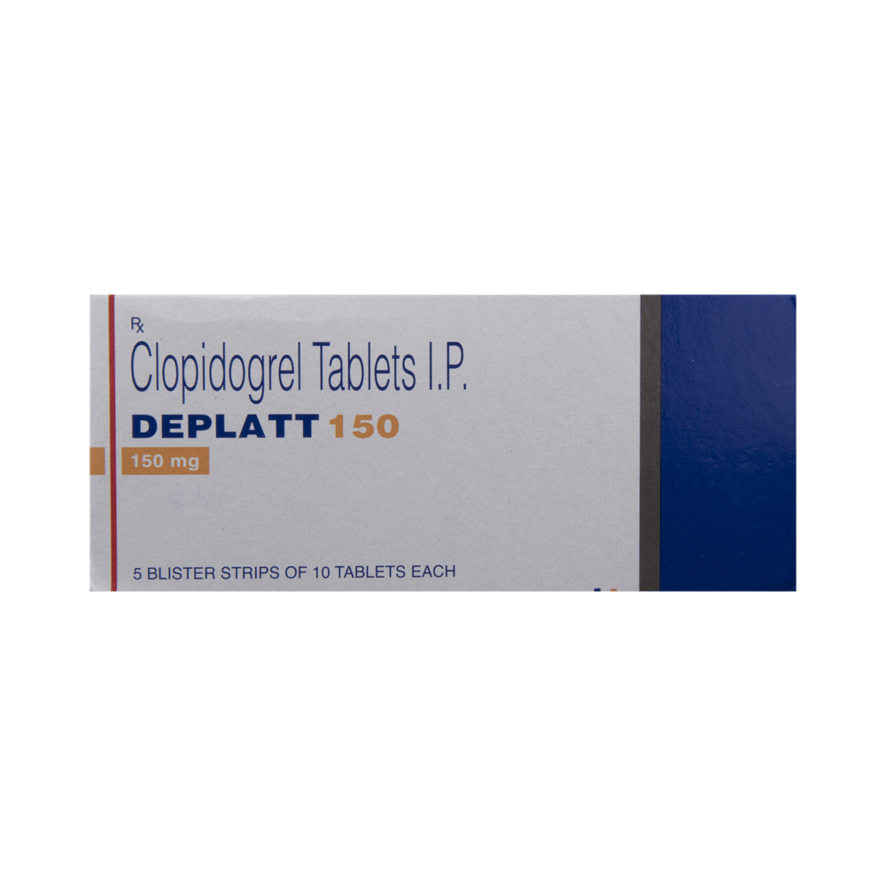Deplatt 150 Tablet is an antiplatelet medication. It works by preventing platelets from sticking together, thereby decreasing the formation of harmful blood clots. This lowers the chance of heart attack or stroke.