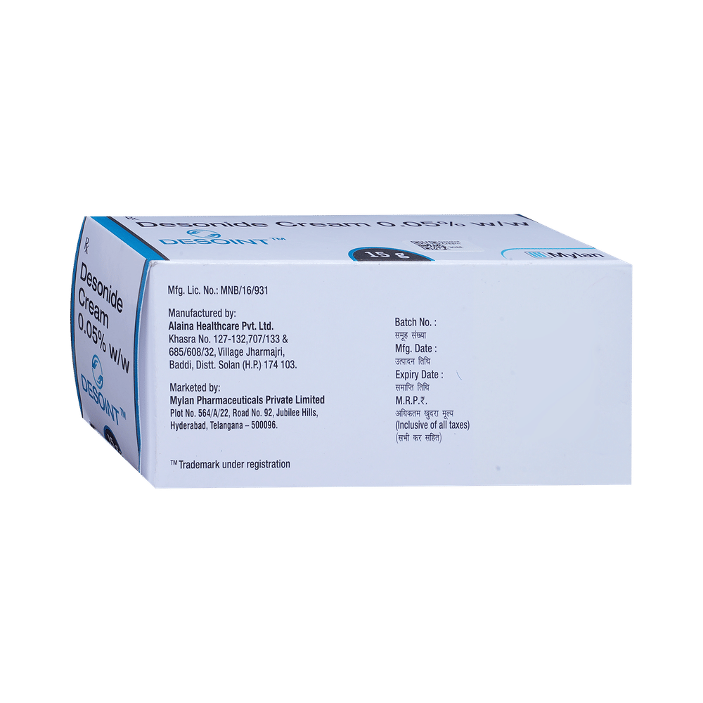 Desoint Cream is a topical steroid use for the treatment of skin conditions with inflammation and itching. It provides relief from swelling, redness, and itching in the affected area by inhibiting the release of substances that cause inflammation. Desoint Cream is only meant for external use and should be used as advised by your doctor. You should normally wash and dry the affected area before applying a thin layer of the medicine. Avoid any contact with your eyes, nose, or mouth. Rinse it off with plenty of water in case of accidental contact. Avoid covering the treated area with airtight dressings such as bandages unless directed by a doctor.Using the medicine may cause burning sensation, irritation, redness, and swelling at the site of application, and rash. These are temporary and usually resolve with time. However, if they persist or worsen, let your doctor know. The medicine is not recommended for pregnant women. Pregnant and breastfeeding mothers should consult their doctors before using this medicine.