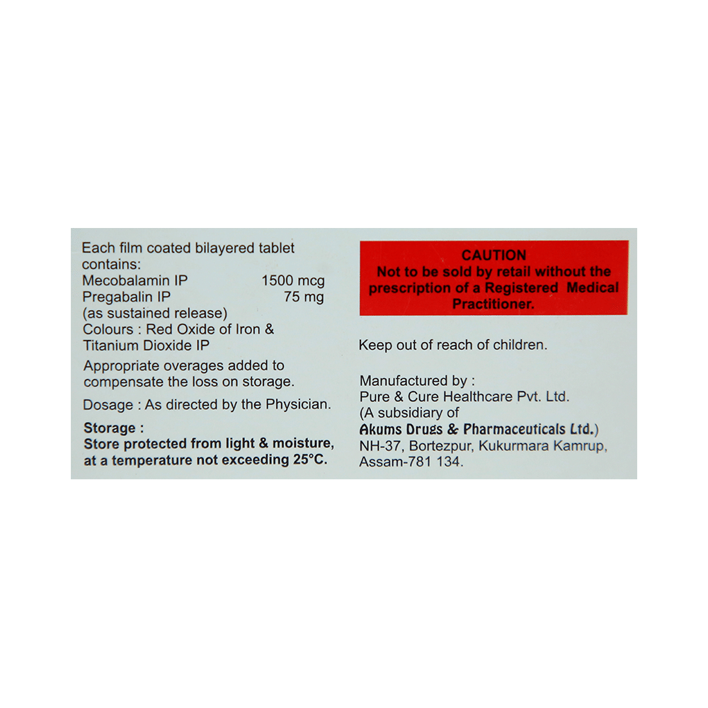 Salt Composition: Methylcobalamin (1500mcg) + Pregabalin (75mg)