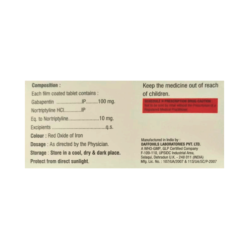Salt Composition: Gabapentin (100mg) + Nortriptyline (10mg)