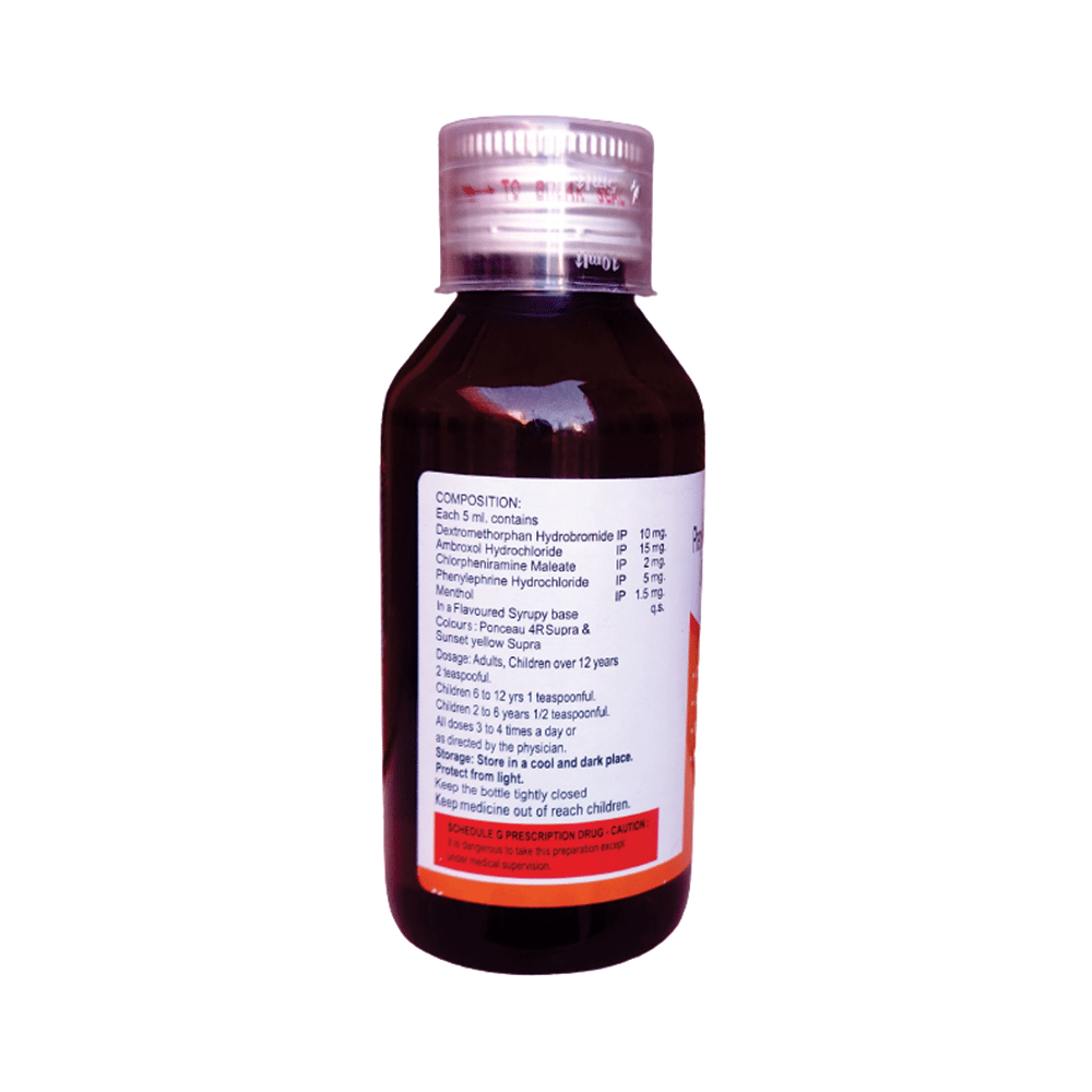 Salt Composition: Ambroxol (15mg/5ml) + Dextromethorphan Hydrobromide (10mg/5ml) + Phenylephrine (5mg/5ml) + Chlorpheniramine Maleate (2mg/5ml) + Menthol (1.5mg/5ml)