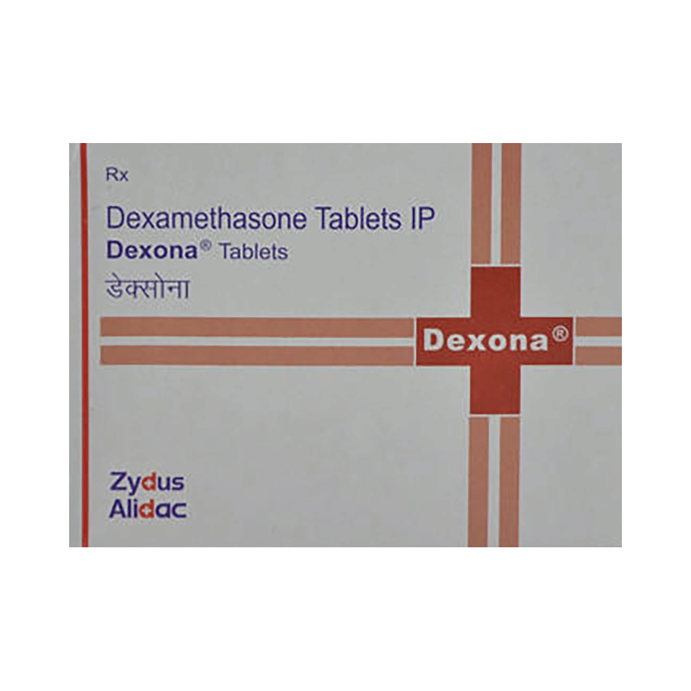 DEXona Tablet belongs to a group of medicines called steroids. It is used in the treatment of various diseases and conditions such as inflammatory conditions, autoimmune conditions, and cancer. DEXona Tablet provides relief from swelling, redness, pain, and itching in the affected area by preventing the release of substances that cause inflammation. It should be taken with food to avoid stomach upset. Taking the medicine regularly at the right times increases its effectiveness. It is important to keep taking the medicine regularly until your doctor tells you it is safe to stop.The most common side effects of this medicine include cardiovascular complications, electrolyte imbalances, gastrointestinal disorders, metabolic disorders, musculoskeletal pain, neurological disorders, and weight gain. If you experience such symptoms that persist or get worse, let your doctor know.DEXona Tablet can make it harder for you to fight off infections. Tell your doctor if you have any signs of infection such as a fever or sore throat. Before taking this medicine, you should let your doctor know all the other medicines you are taking. It is important for pregnant and breastfeeding mothers to ask the advice of their doctors before taking this medicine.