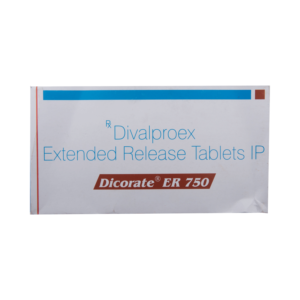 Dicorate ER 750 Tablet is a medication used to treat epilepsy, seizures, bipolar disorder, mania, trigeminal neuralgia, and migraines. It works by stabilizing brain activity. Always use it under medical supervision for safe and effective treatment. Dicorate ER 750 Tablet may be used alone or in combination with other medicines. Your doctor will determine the appropriate dose and frequency to effectively control your symptoms. You can take this medicine with or without food, but for the best results, take it at the same time each day. It usually takes a couple of weeks to work. It is important to take this medicine regularly and for as long as you are advised, even if you feel well. Missing doses may trigger seizures, and if you stop, your condition may get worse. It should never be stopped suddenly.The most common side effects of Dicorate ER 750 Tablet include headache, constipation, nausea, vomiting, dizziness, weight gain, rash, back pain, and abdominal pain. Most of these are not serious. Continue taking the medicine, but consult your doctor if these side effects persist or become bothersome. However, if you notice a skin rash or redness, tell your doctor straight away. Long-term treatment with this medicine can cause osteoporosis (reduced bone mass) and increase your risk of breaking a bone. Also, Dicorate ER 750 Tablet may rarely lead to suicidal thoughts and behaviors. If your mood becomes depressed, tell your doctor.Dicorate ER 750 Tablet may not be suitable for everybody. Before using it, tell your doctor if you have ever had heart problems, kidney or liver disease, difficulty urinating, depression, or suicidal thoughts. Some medicines can interfere with it and should not be taken together, so tell your doctor about all the medicines you are taking to make sure it is safe for you. If you are pregnant, do not take this medicine without asking your doctor. Avoid drinking alcohol, as it may enhance certain side effects and increase the risk of seizures. You may need frequent blood tests to help your doctor make sure you are taking the right dose both before you start and while you are using it.