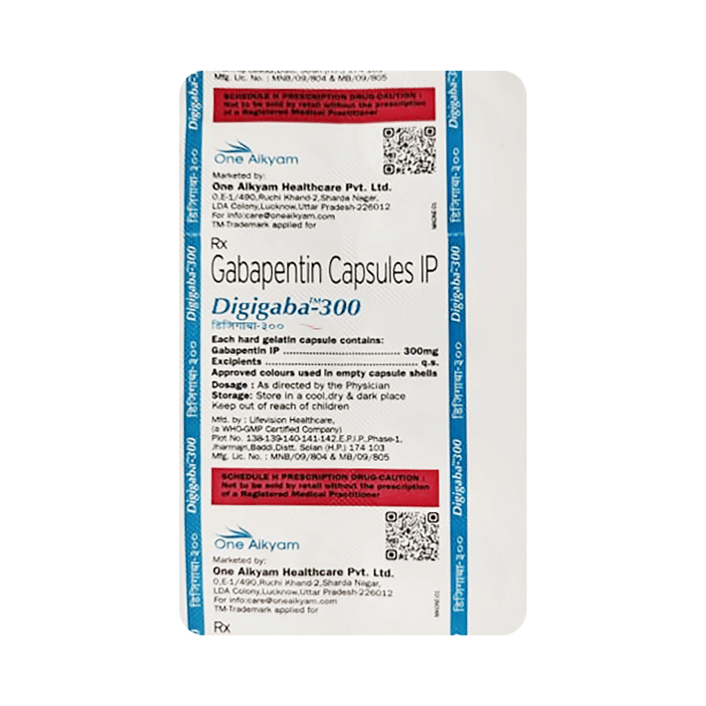 In Neuropathic painDigigaba 300 Capsule is used to treat long-lasting (chronic) pain caused by nerve damage due to diabetes, shingles or spinal cord injury. It reduces pain and its associated symptoms such as mood changes, sleep problems, and tiredness. It is thought to work by interfering with pain signals that travel through the damaged nerves and the brain. Taking this medicine regularly will improve your physical and social functioning and overall quality of life. It takes a few weeks to work so you need to take it regularly even if you feel it is not doing any good. Once your symptoms have gone you should still keep taking the medicine until your doctor advises you to stop.In Epilepsy/SeizuresDigigaba 300 Capsule belongs to a group of medicines called anticonvulsants which is used to treat some forms of epilepsy in adults. It is thought to work by slowing down nerve impulses in the brain which cause seizures (fits). It helps reduce symptoms such as confusion, uncontrollable jerking movements, loss of awareness and fear or anxiety. It will help you go about your daily activities with more confidence and may allow you to do some activities that you would otherwise be forbidden or scared to do (such as swimming and driving). It can take a few weeks for this medicine to work and during this time you may still have seizures. Do not stop using this medicine even if you feel well, until your doctor advises you to. Missing doses may trigger a seizure. show moreshow less