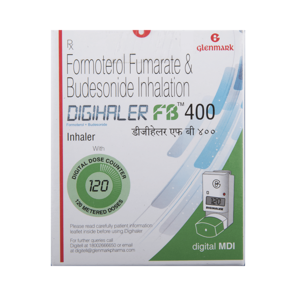 Digihaler FB 400 Inhaler is a combination of two medicines in one inhaler. It relieves the long-term symptoms of asthma and COPD, making breathing easier. It works by inhibiting the release of certain chemical messengers that cause inflammation (swelling) and relaxes the muscles in the airways. Your doctor will tell you how often you need to use your inhaler. The effect of this medicine may be noticeable after a few days but will only reach its maximum after a few weeks. This medicine must be used regularly to be effective, so go on taking it even if you don't have any symptoms. That means it’s doing its job. If you stop taking it your symptoms may get worse. This medicine should not be used to relieve sudden shortness of breath. If sudden shortness of breath occurs, use your rescue inhaler. To get the benefit from this medicine you need to make sure you get your inhaler technique right, otherwise, it does not work as well.The most common side effects include headache, nausea, vomiting, stomach discomfort, and respiratory tract infection. If you get there, don’t stop taking it but do talk to your doctor. You can prevent some of these symptoms by rinsing your mouth and throat with water or brushing your teeth after using your inhaler. There are other, rarer side effects which can be serious. Talk to your doctor if you're worried about them.Before taking it, you should tell your doctor if you have any kidney or liver diseases so that your doctor can prescribe a suitable dose for you. You should also tell your doctor if you are pregnant, planning pregnancy or breastfeeding.