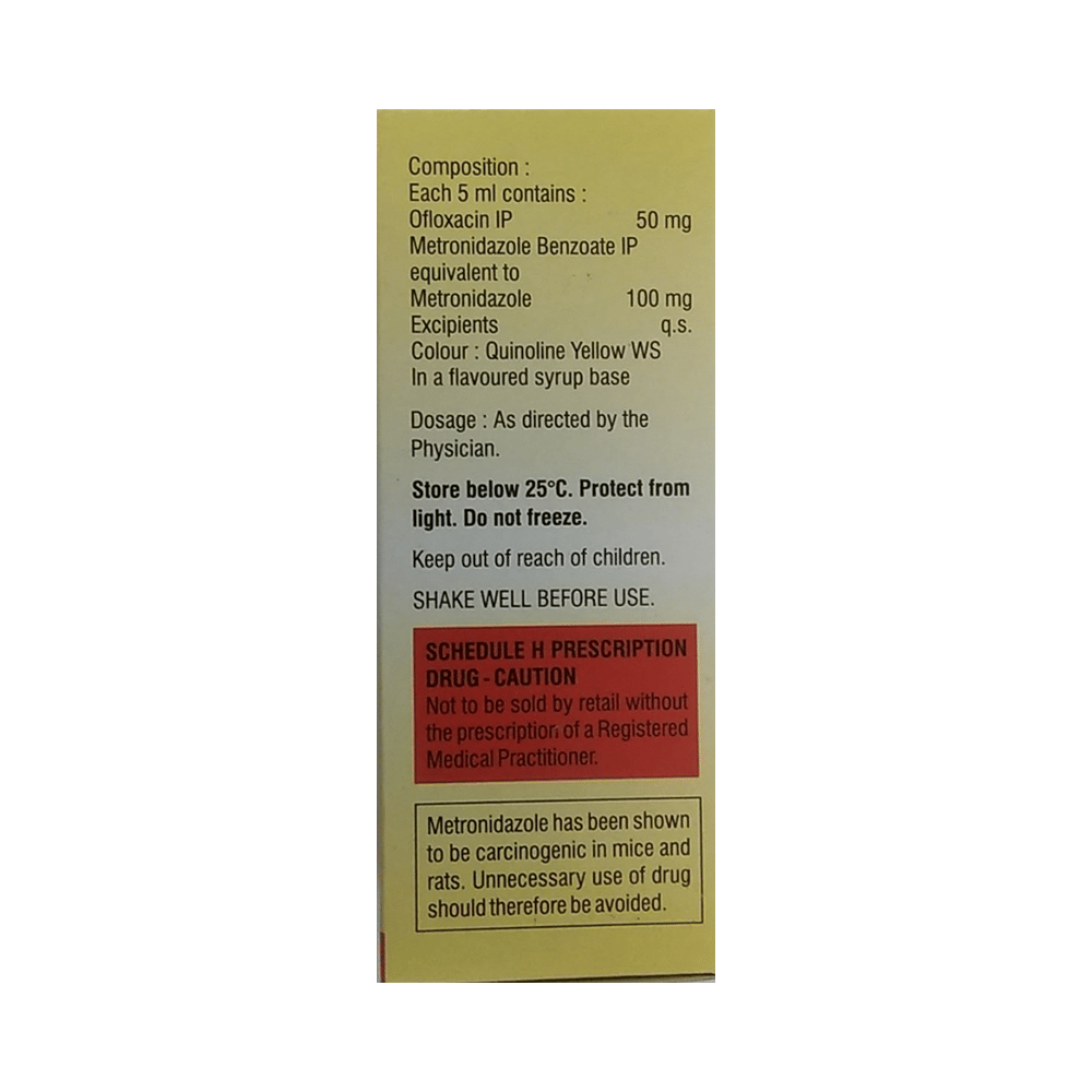 Salt Composition: Ofloxacin (50mg/5ml) + Metronidazole (100mg/5ml)