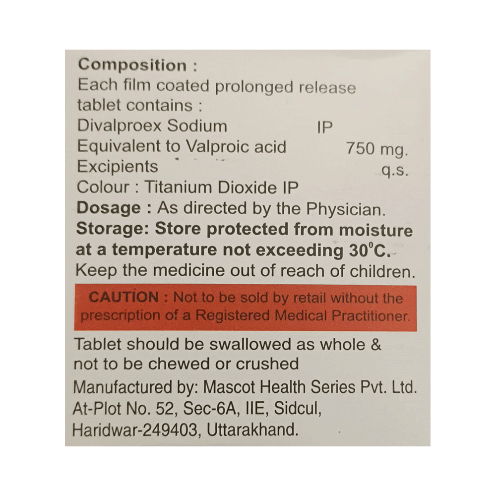 Diprowize OD 750 Tablet PR is a medication used to treat epilepsy, seizures, bipolar disorder, mania, trigeminal neuralgia, and migraines. It works by stabilizing brain activity. Always use it under medical supervision for safe and effective treatment. Diprowize OD 750 Tablet PR may be used alone or in combination with other medicines. Your doctor will determine the appropriate dose and frequency to effectively control your symptoms. You can take this medicine with or without food, but for the best results, take it at the same time each day. It usually takes a couple of weeks to work. It is important to take this medicine regularly and for as long as you are advised, even if you feel well. Missing doses may trigger seizures, and if you stop, your condition may get worse. It should never be stopped suddenly.The most common side effects of Diprowize OD 750 Tablet PR include headache, constipation, nausea, vomiting, dizziness, weight gain, rash, back pain, and abdominal pain. Most of these are not serious. Continue taking the medicine, but consult your doctor if these side effects persist or become bothersome. However, if you notice a skin rash or redness, tell your doctor straight away. Long-term treatment with this medicine can cause osteoporosis (reduced bone mass) and increase your risk of breaking a bone. Also, Diprowize OD 750 Tablet PR may rarely lead to suicidal thoughts and behaviors. If your mood becomes depressed, tell your doctor.Diprowize OD 750 Tablet PR may not be suitable for everybody. Before using it, tell your doctor if you have ever had heart problems, kidney or liver disease, difficulty urinating, depression, or suicidal thoughts. Some medicines can interfere with it and should not be taken together, so tell your doctor about all the medicines you are taking to make sure it is safe for you. If you are pregnant, do not take this medicine without asking your doctor. Avoid drinking alcohol, as it may enhance certain side effects and increase the risk of seizures. You may need frequent blood tests to help your doctor make sure you are taking the right dose both before you start and while you are using it.