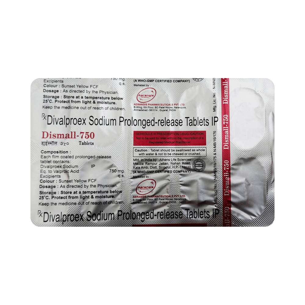 In Treatment of Bipolar disorderDismall 750 Tablet PR works to restore the normal balance of nerve activity in your brain. It can help prevent extreme changes in mood and help you feel less agitated. You may experience fewer episodes of low mood. It can take several weeks for this medicine to work and you may still feel low during this time. It is likely that you will take this medicine for at least six months but possibly much longer. It needs to be taken regularly to work effectively. Do not stop taking it unless your doctor advises you to. You should continue to eat well and keep fit to reduce symptoms of bipolar disorder.In Treatment of Epilepsy/SeizuresDismall 750 Tablet PR is an anticonvulsant (or anti-epileptic) medicine that works by decreasing the nerve impulses which cause the seizures. By controlling the frequency of seizures, it will help you go about your daily activities with more confidence. It helps reduce symptoms such as confusion, uncontrollable jerking movements, loss of awareness, and fear or anxiety.This medicine is not associated with any physical or psychological dependence (addiction) but it should not be stopped suddenly. It must be taken regularly as prescribed to be effective. Missing doses may trigger a seizure.show moreshow less