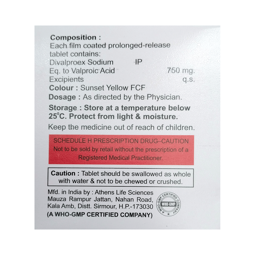 Salt Composition: Divalproex (750mg)