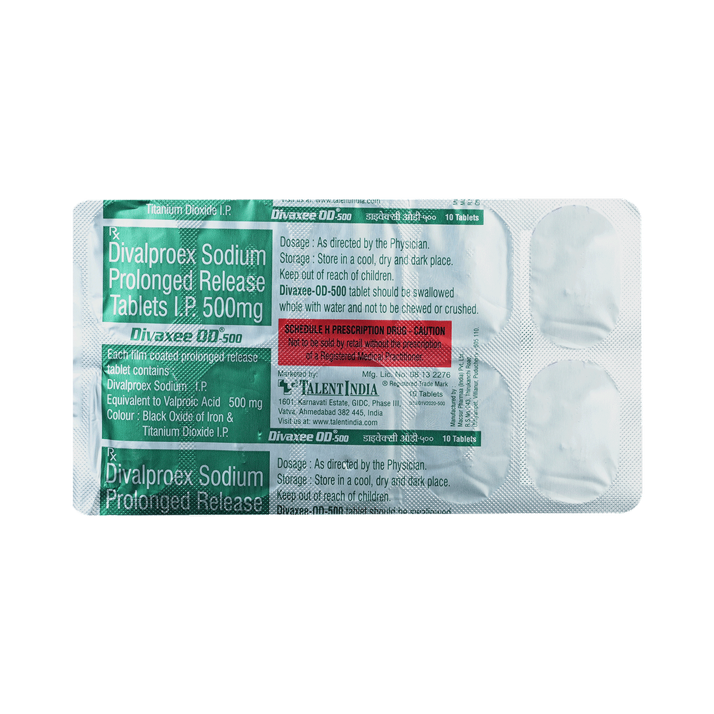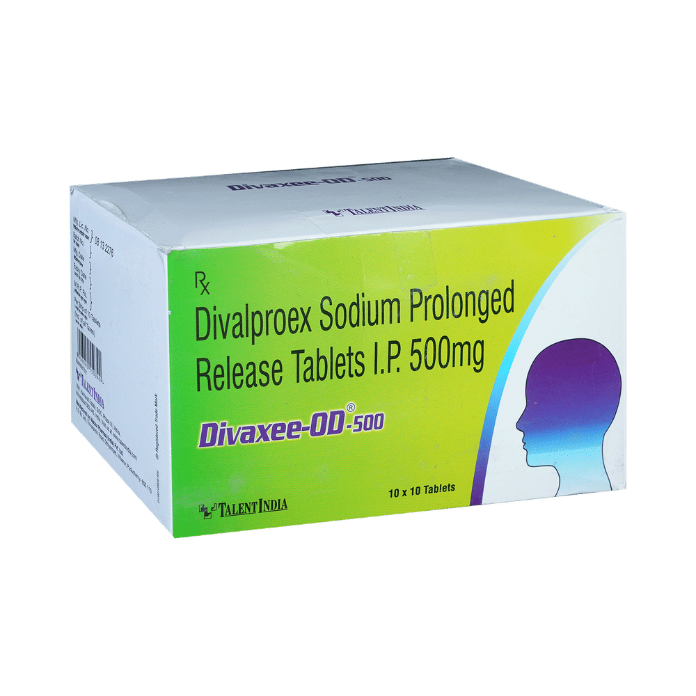 Divaxee OD 500 Tablet PR is a medication used to treat epilepsy, seizures, bipolar disorder, mania, trigeminal neuralgia, and migraines. It works by stabilizing brain activity. Always use it under medical supervision for safe and effective treatment. Divaxee OD 500 Tablet PR may be used alone or in combination with other medicines. Your doctor will determine the appropriate dose and frequency to effectively control your symptoms. You can take this medicine with or without food, but for the best results, take it at the same time each day. It usually takes a couple of weeks to work. It is important to take this medicine regularly and for as long as you are advised, even if you feel well. Missing doses may trigger seizures, and if you stop, your condition may get worse. It should never be stopped suddenly.The most common side effects of Divaxee OD 500 Tablet PR include headache, constipation, nausea, vomiting, dizziness, weight gain, rash, back pain, and abdominal pain. Most of these are not serious. Continue taking the medicine, but consult your doctor if these side effects persist or become bothersome. However, if you notice a skin rash or redness, tell your doctor straight away. Long-term treatment with this medicine can cause osteoporosis (reduced bone mass) and increase your risk of breaking a bone. Also, Divaxee OD 500 Tablet PR may rarely lead to suicidal thoughts and behaviors. If your mood becomes depressed, tell your doctor.Divaxee OD 500 Tablet PR may not be suitable for everybody. Before using it, tell your doctor if you have ever had heart problems, kidney or liver disease, difficulty urinating, depression, or suicidal thoughts. Some medicines can interfere with it and should not be taken together, so tell your doctor about all the medicines you are taking to make sure it is safe for you. If you are pregnant, do not take this medicine without asking your doctor. Avoid drinking alcohol, as it may enhance certain side effects and increase the risk of seizures. You may need frequent blood tests to help your doctor make sure you are taking the right dose both before you start and while you are using it.