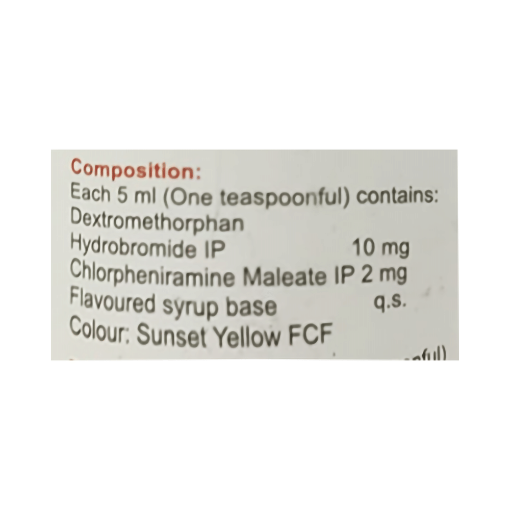 Salt Composition: Chlorpheniramine Maleate (2mg/5ml) + Dextromethorphan Hydrobromide (10mg/5ml)