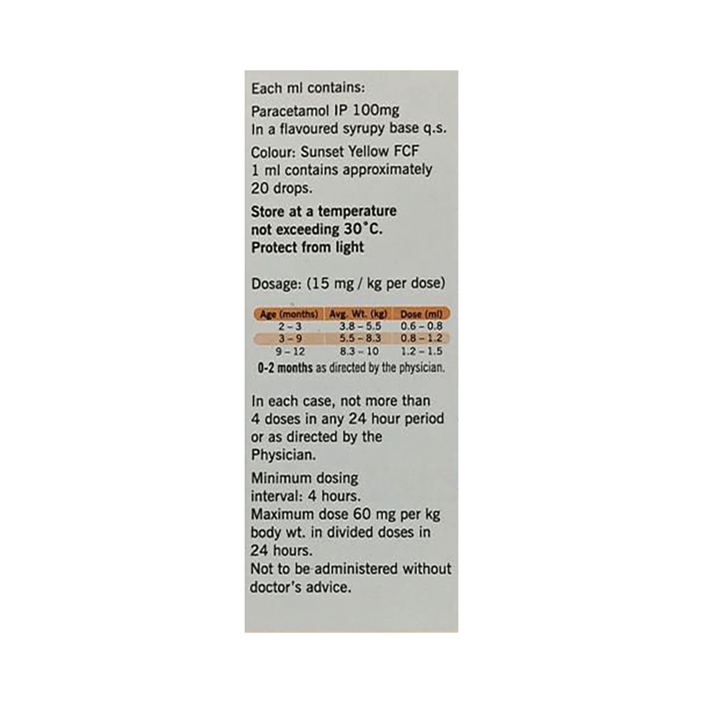Dolo Drops is a prescribed medicine that helps to ease pain and bring down a high body temperature (fever). It treats conditions like headache, toothache, body aches, and fever in children. Dolo Drops is given orally, preferably at a fixed time every day. Though this medicine can be taken before or after food, it is best given after food, as it can irritate the inner lining of an empty stomach. The dose and duration will depend upon your child's age, body weight, and severity of the infection, so stick to the dose, time, and way prescribed by your child’s doctor.However, temporary side effects such as indigestion, nausea, allergic reactions, and vomiting may occur in some children. Consult your doctor in case these episodes become bothersome for your child. This medicine is often considered safe and effective, but may not be suitable for everybody.Do not give your child Dolo Drops along with other medicines (many cold and flu medicines and other painkillers) that contain paracetamol, as this may result in overdosing and cause dangerous side effects such as hepatotoxicity (liver damage). Always check the ingredients of any other medicines before giving them to your child in combination with this medicine.Generally, Dolo Drops is well-tolerated by the children. Inform your doctor if your child is undergoing treatment for any blood-related disorder, is allergic to any medicinal compound, or has any birth defects, liver impairment, or kidney dysfunction. This will help your child’s doctor evaluate the dose and suitability of this medicine in a better way.