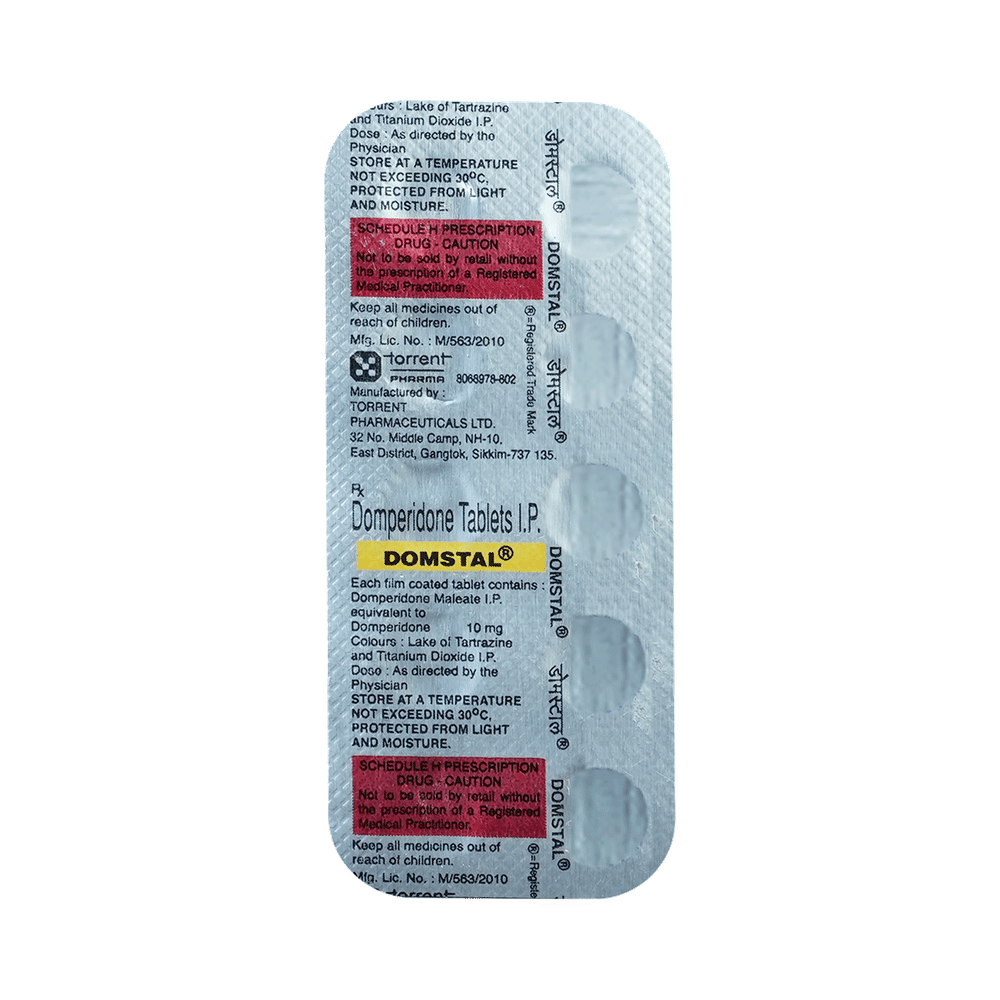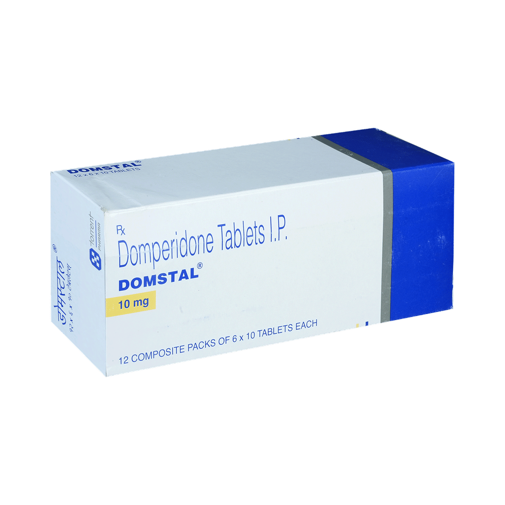 Domstal 10mg Tablet is used in the treatment of indigestion, nausea, and vomiting. It increases the movement of food through the stomach and intestines, thereby relieving bloating, fullness, and gastric discomfort. Take Domstal 10mg Tablet half an hour before each meal in the dose and duration as advised by the doctor. The dose you are given will depend on your condition and how you respond to the medicine. You should take this medicine until your doctor tells you to stop. Let your doctor know about all other medications you are taking as some may affect, or be affected by this medicine.The most common side effects are headache, dry mouth, and stomach pain. Most of these are temporary and usually resolve with time. Contact your doctor straight away if you are at all concerned about any of these side effects. It may also cause dizziness. Do not drive or do anything that requires mental focus until you know how this medicine affects you. Avoid drinking alcohol while taking this medicine as it can worsen the side effects. This medicine may also cause diarrhea, so it is better to take plenty of fluids while taking this medicine as it may help to prevent dehydration.Before taking this medicine you should let your doctor know if you have liver or kidney problems. You shouldn't take it at the same time as an antacid. Pregnant women should also consult their doctor. You should avoid this medicine if suffering from bleeding ulcers in the stomach.