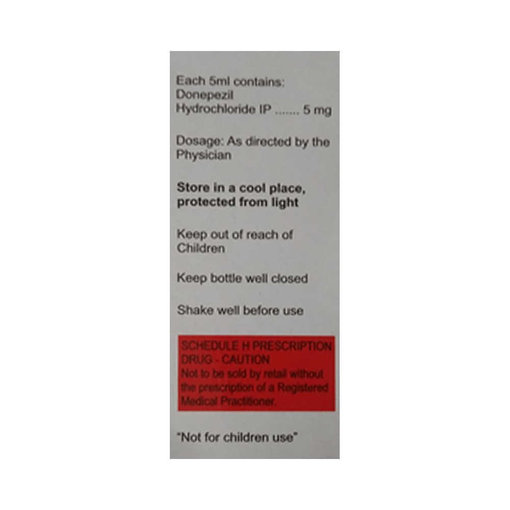 Donep Syrup is used to treat mild to moderate dementia in Alzheimer’s disease, a progressive illness that gradually affects memory and thinking. It does not cure this illness but may help improve memory, awareness, and other symptoms. Your doctor will explain how to take Donep Syrup. You may take it with food, preferably at night before going to bed. Follow the instructions carefully to get the most benefit. The dose may change from time to time to suit your individual needs. It can take up to a few weeks for symptoms to improve so keep taking your medicine regularly. You should not stop taking this medicine without consulting your doctor.Some common side effects of this medicine include nausea, diarrhea, insomnia, vomiting, muscle cramps, fatigue, weight loss (anorexia), headache, loss of appetite, common cold, urinary incontinence, and rash. Drink plenty of fluids to keep yourself hydrated. You may have side effects more often when you start your treatment or when your dose is increased. Usually, the side effects will slowly go away as your body gets used to the Donep Syrup. If they are severe or will not go away, you should contact your doctor.Before using Donep Syrup, you should tell your doctor if you have ever had heart problems, stomach ulcers, epilepsy, or asthma. It may also affect, or be affected by, some other drugs you are using so let your doctor know what these are to be safe. During pregnancy, this medicine should only be taken if it is advised.